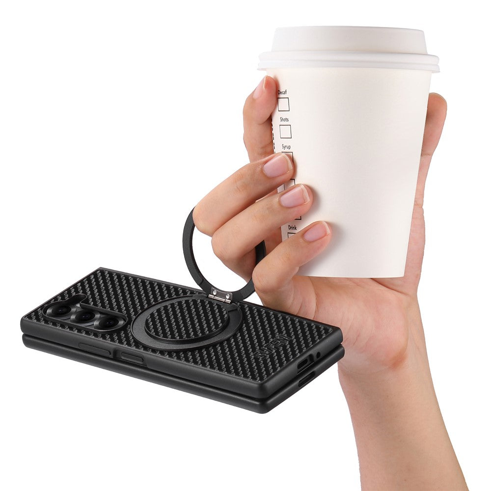 SUTENI G3 For Samsung Galaxy Z Fold7 5G Magnetic Case Rotating Kickstand Carbon Fiber Texture Leather Phone Back Cover