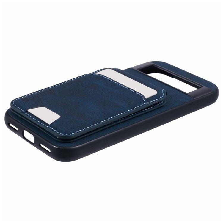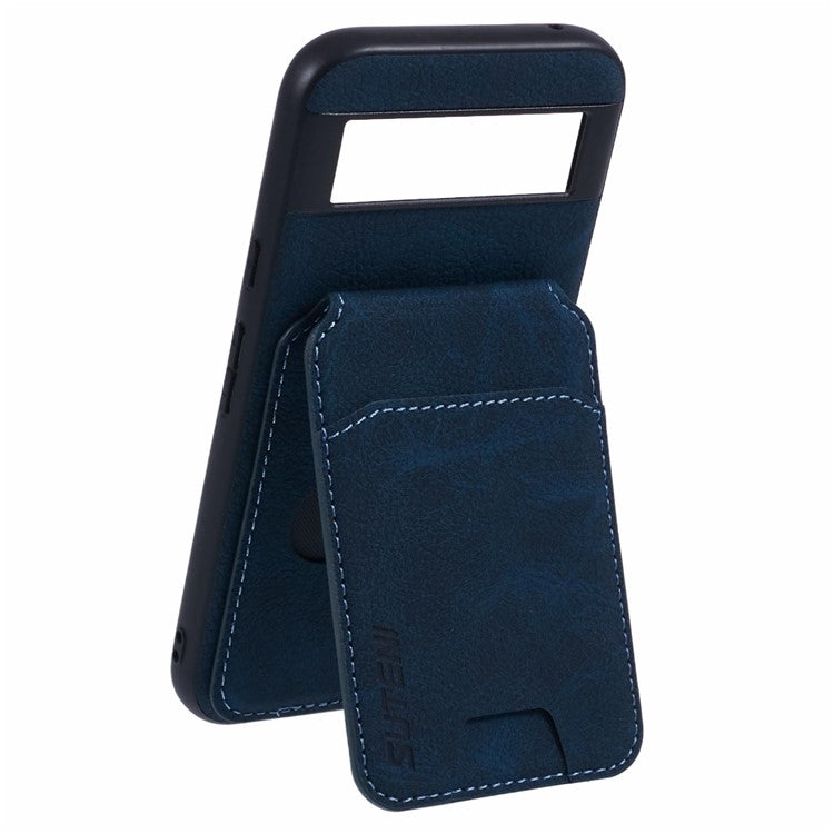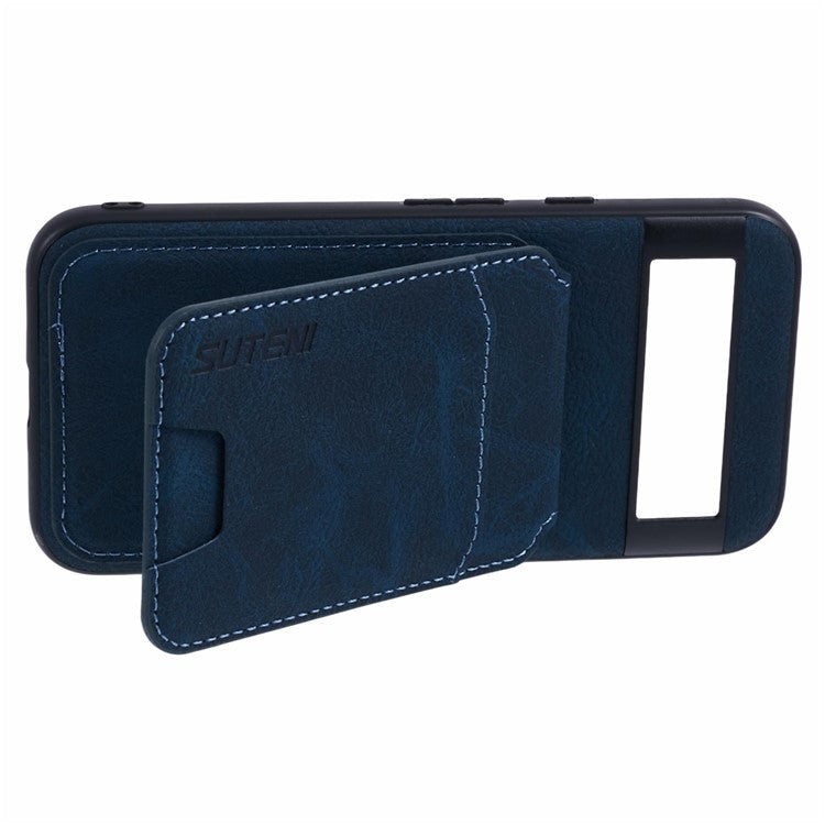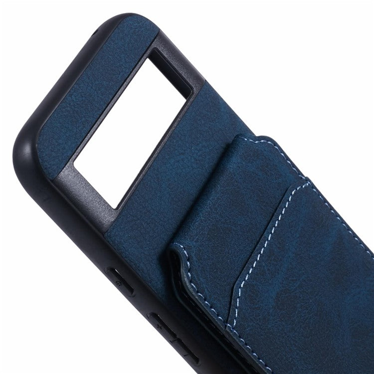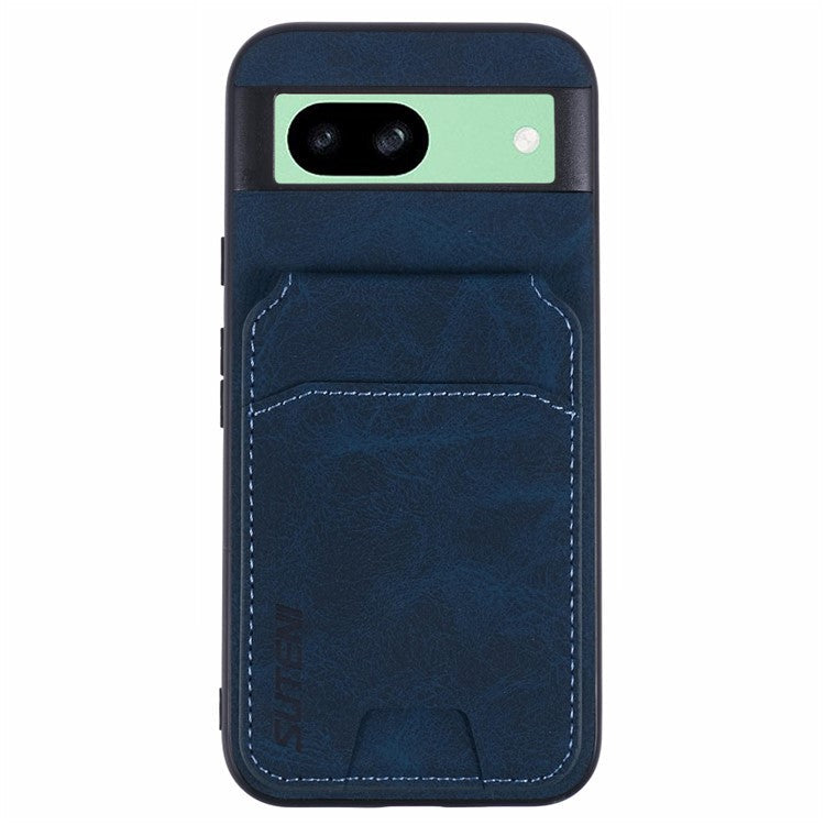 SUTENI H02 For Google Pixel 8a Case Card Slots Kickstand Litchi Texture Leather+TPU Cover - Blue