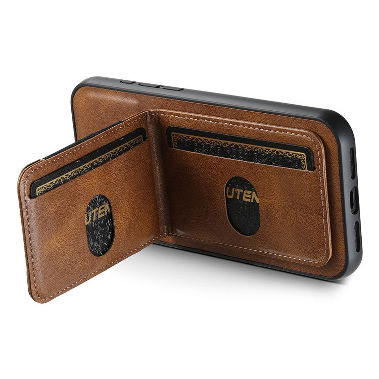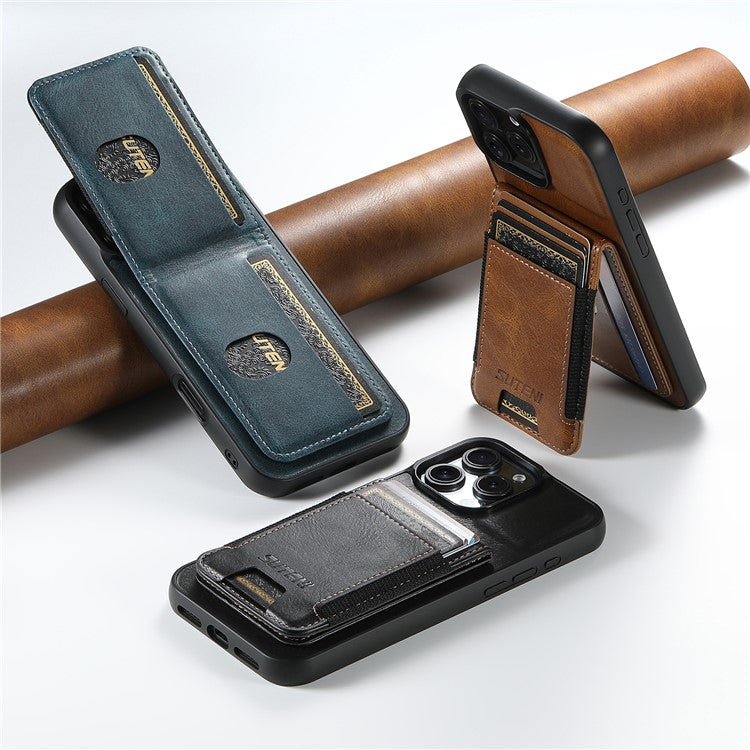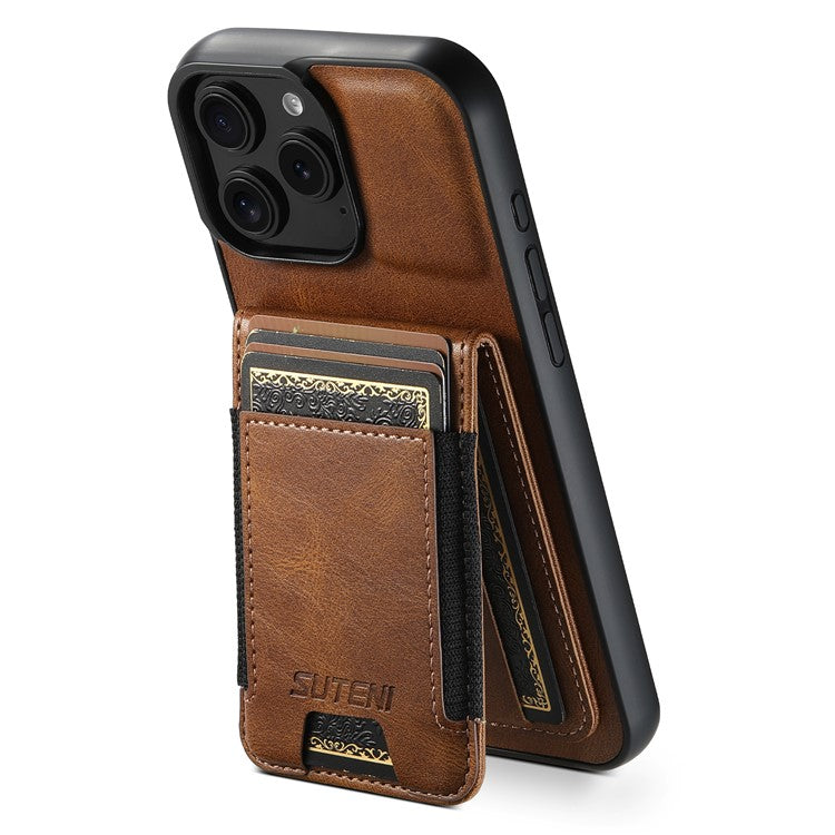 SUTENI H03 For iPhone 16 Pro Case Card Holder Waxy Texture Leather+TPU Phone Cover - Brown