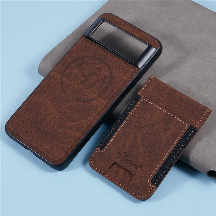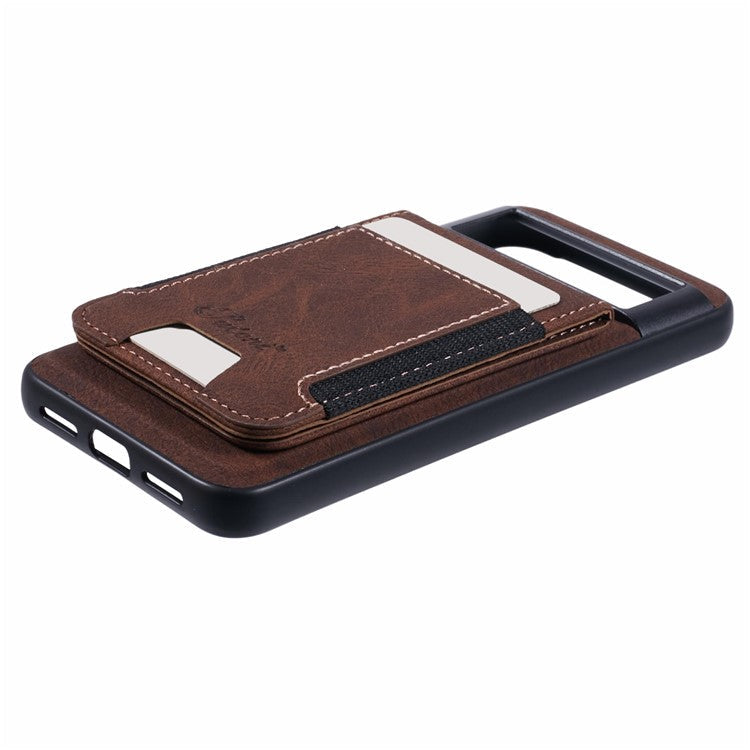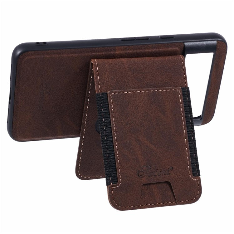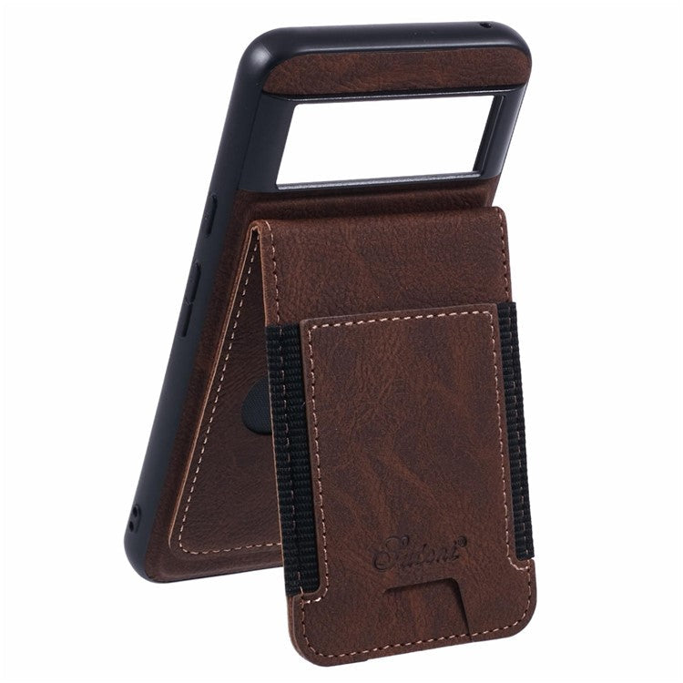SUTENI H17 For Google Pixel 8 Case Compatible with MagSafe Card Slots PU+TPU Kickstand Phone Cover - Brown