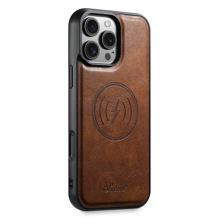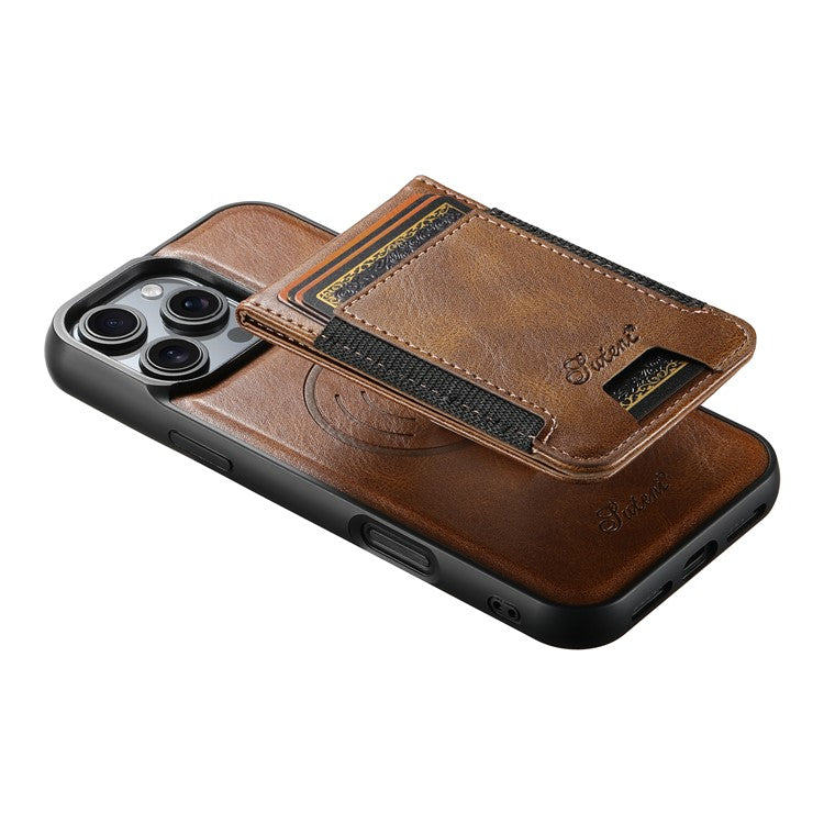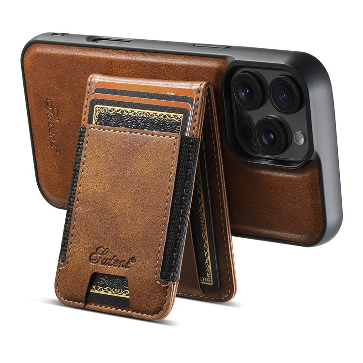 SUTENI H17 For iPhone 16 Pro Case Compatible with MagSafe Card Holder Kickstand Phone Cover - Brown
