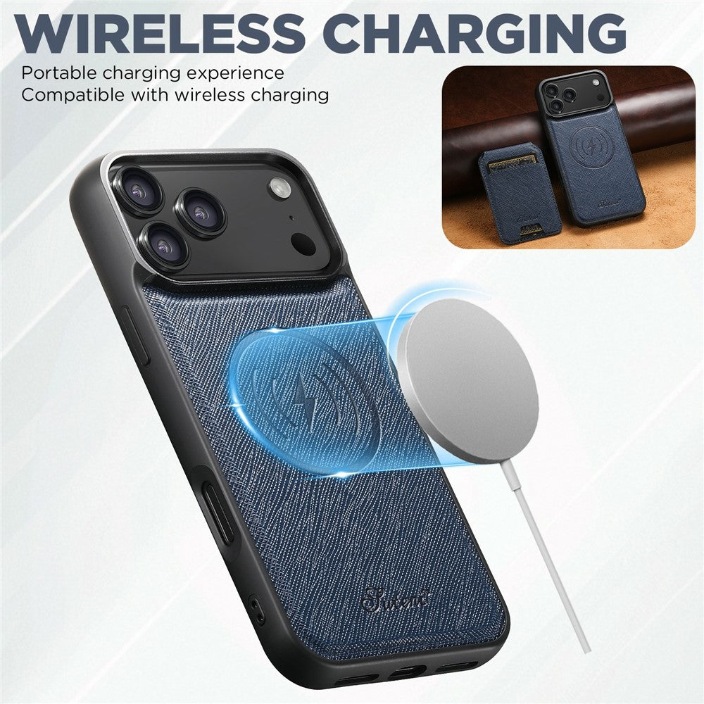 SUTENI H18 For iPhone 17 Pro Max Magnetic Case Cross Texture Leather + TPU Cover with Detachable Card Bag - Blue