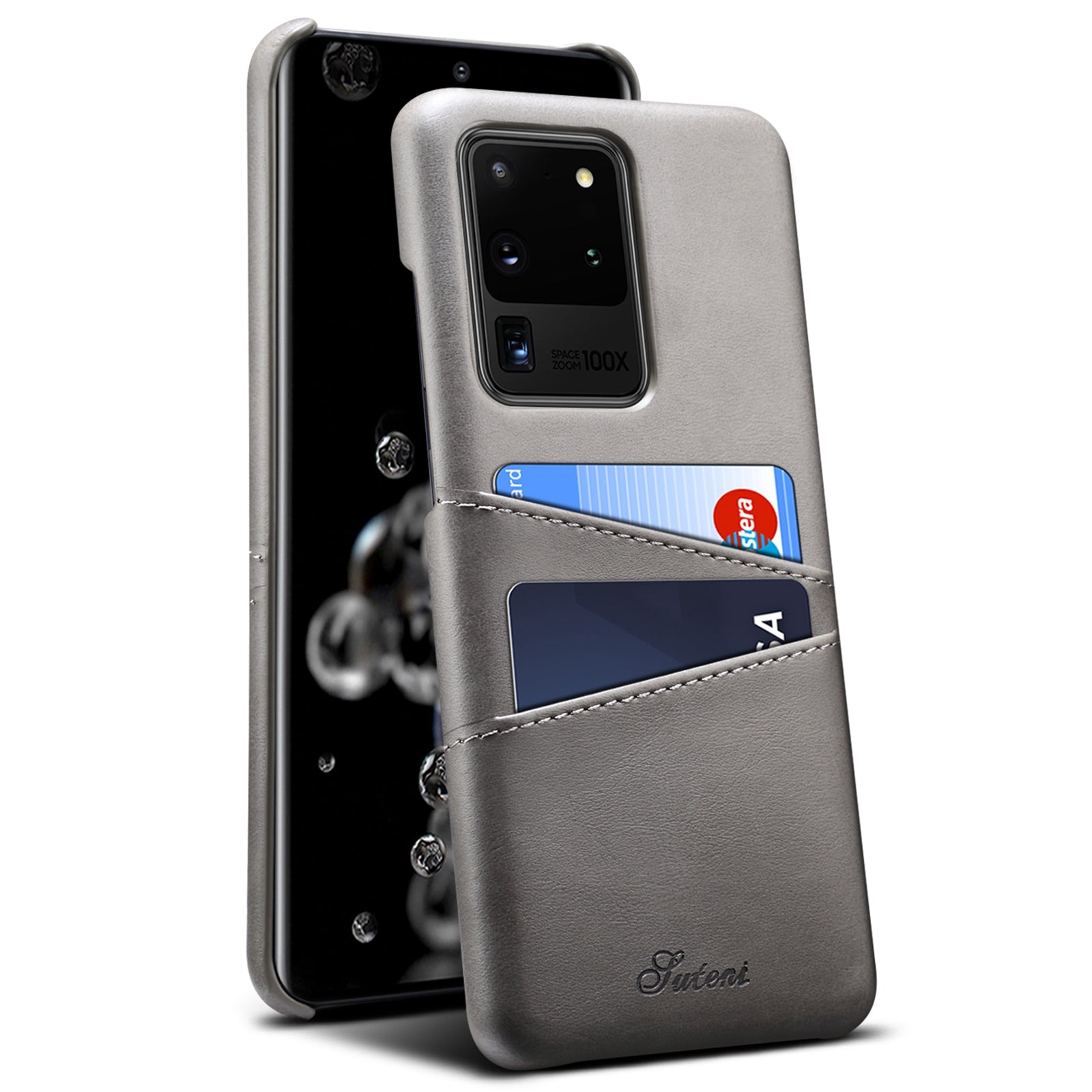 SUTENI PU Leather Coated PC Case Large Cutouts Easy Ports Access with Card Holders for Samsung Galaxy S20 Ultra - Grey