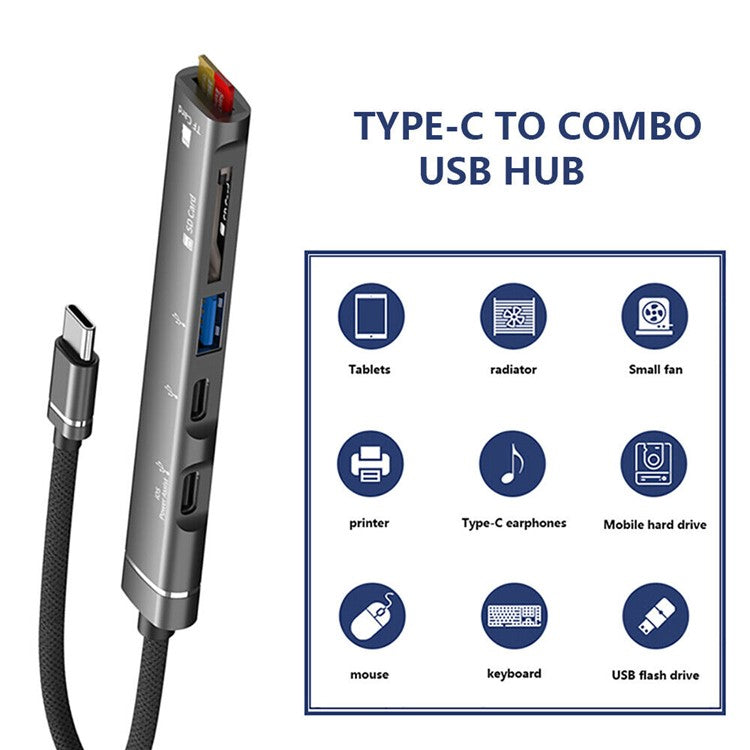 SVT01 Type-C Docking Station Multiple Ports USB Hub Adapter for Cell Phones - Dark Grey