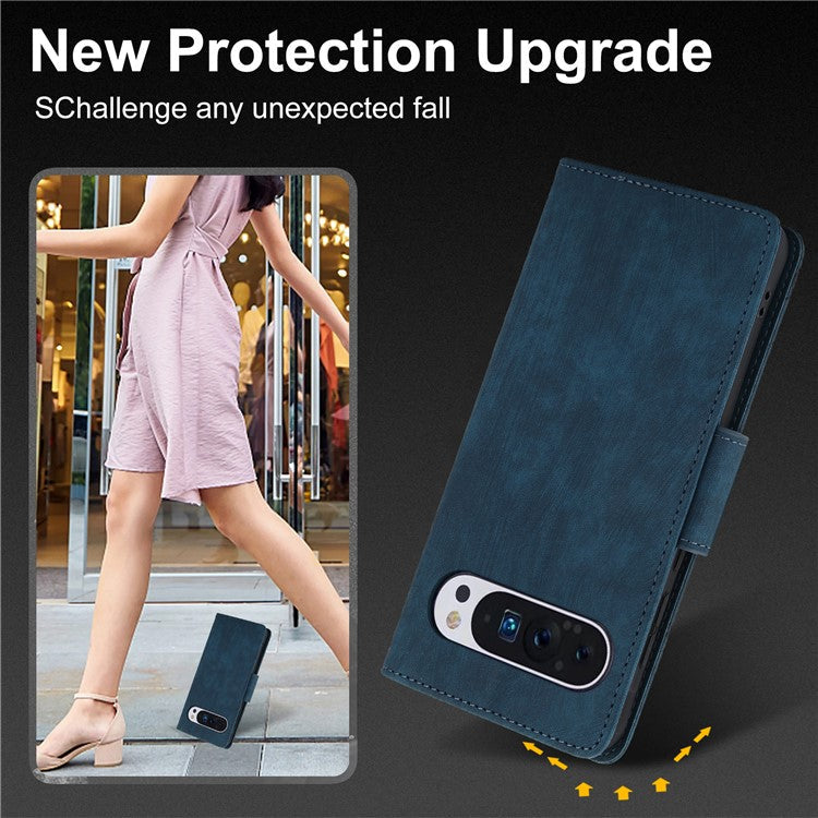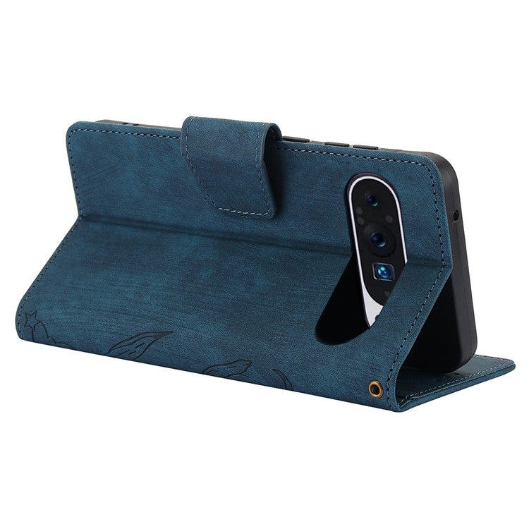 SY-001 For Google Pixel 9 Pro / Pixel 9 Leather Case Butterfly Flower Wallet Stand Phone Cover - Blue