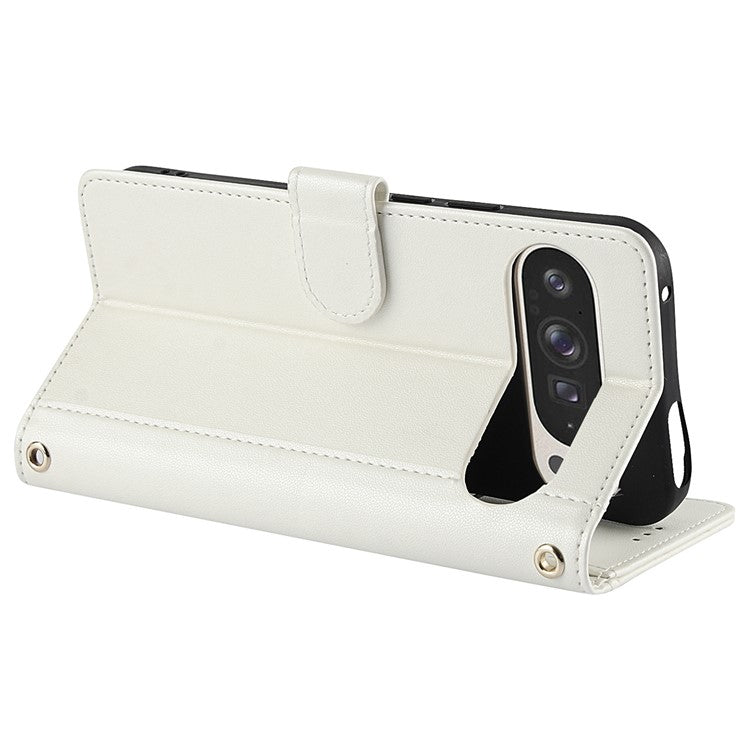 SY-003 For Google Pixel 9 Pro / Pixel 9 Case PU Leather Stand View Phone Wallet Cover with Hand Strap - White