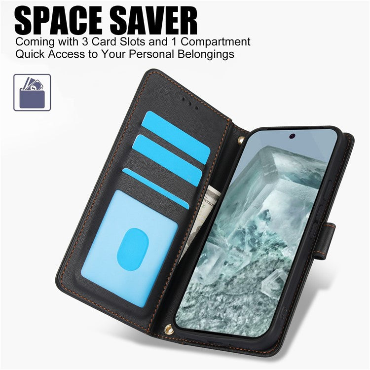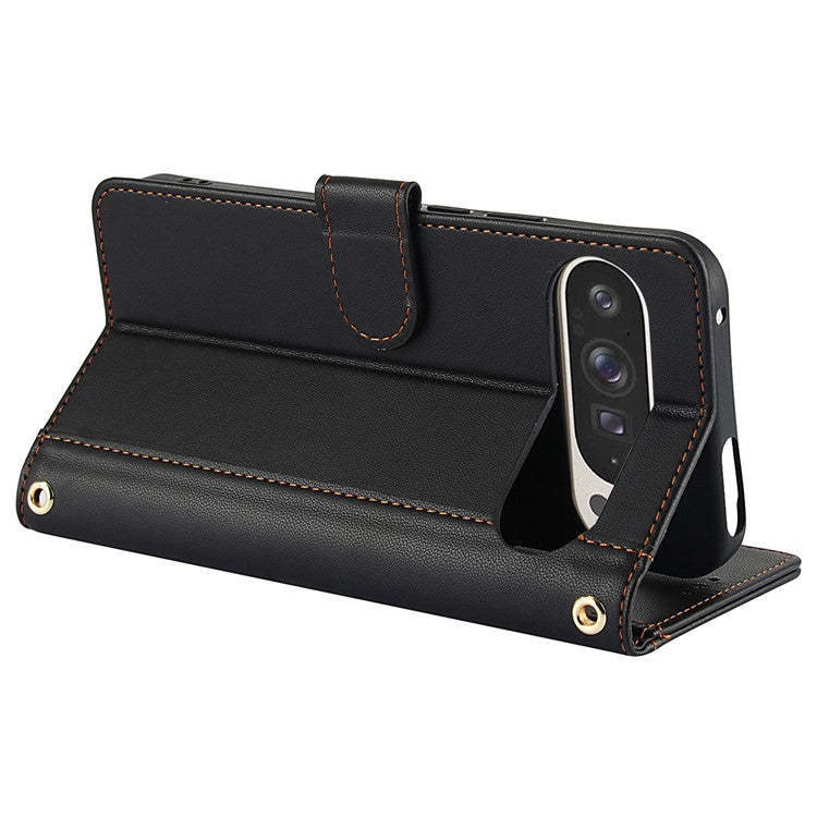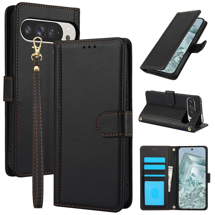 SY-003 For Google Pixel 9 Pro XL Case PU Leather Stand View Phone Wallet Cover with Hand Strap - Black