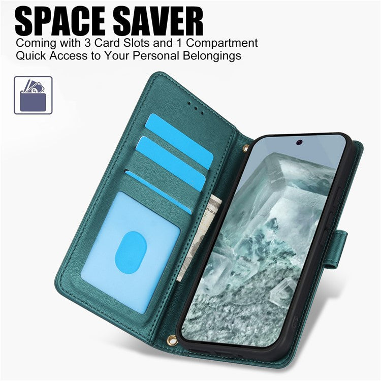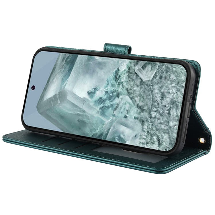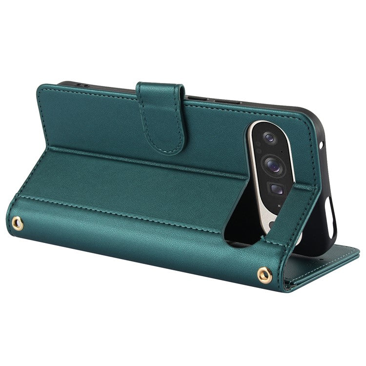SY-003 For Google Pixel 9 Pro XL Case PU Leather Stand View Phone Wallet Cover with Hand Strap - Green