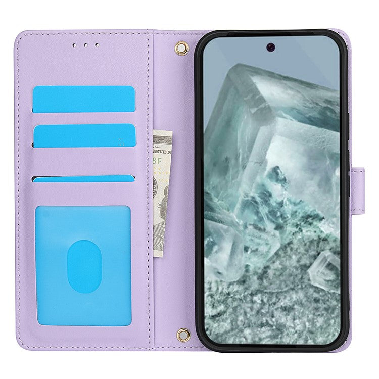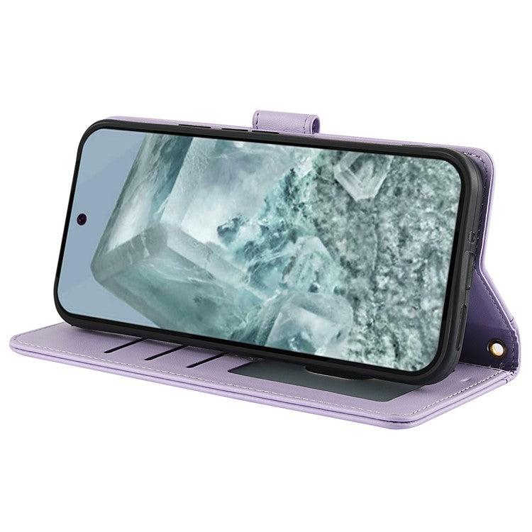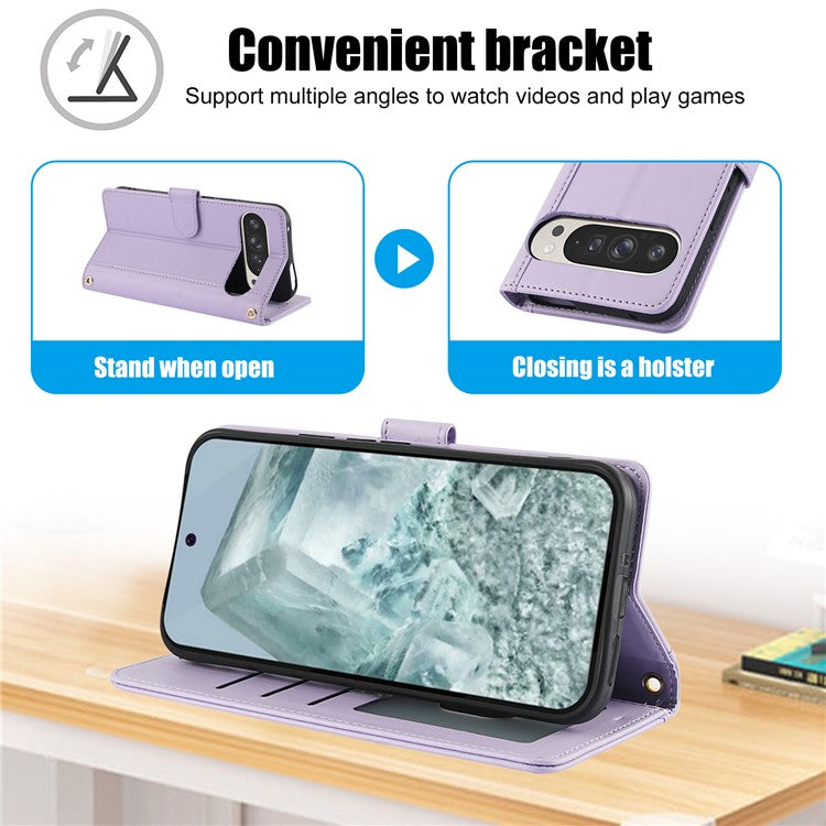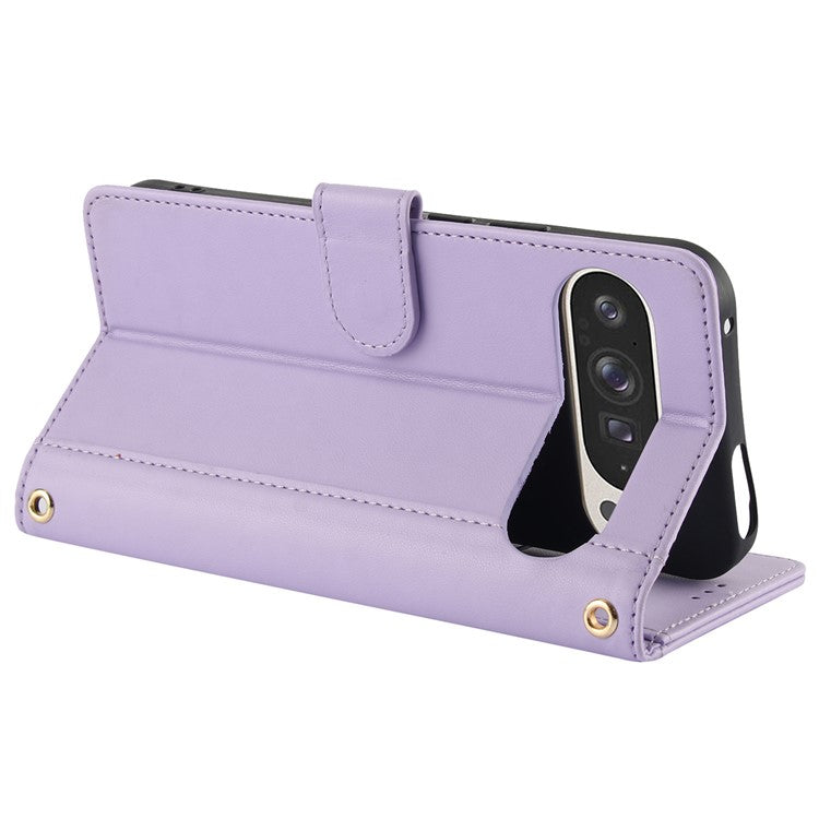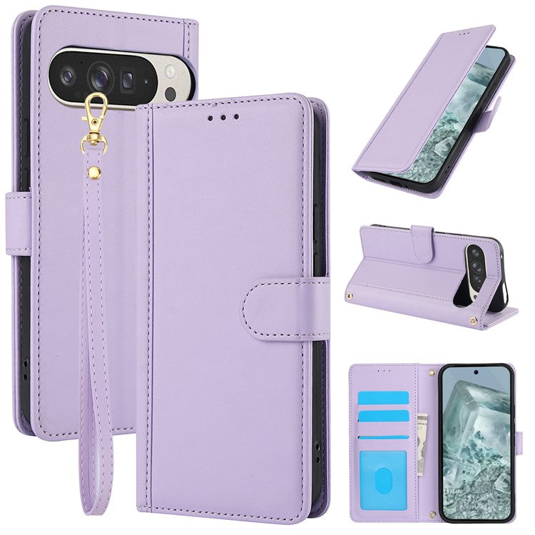 SY-003 For Google Pixel 9 Pro XL Case PU Leather Stand View Phone Wallet Cover with Hand Strap - Purple