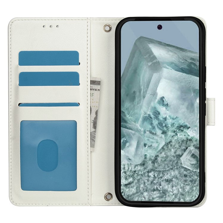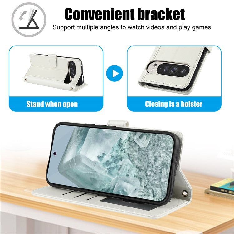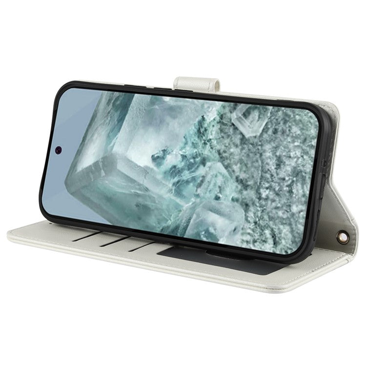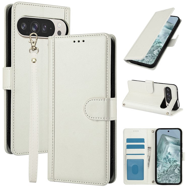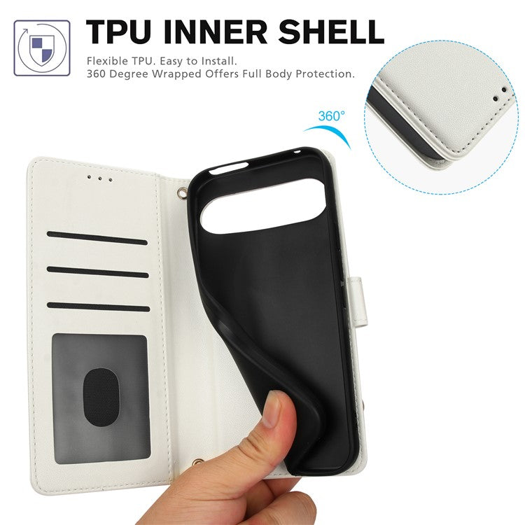SY-003 For Google Pixel 9 Pro XL Case PU Leather Stand View Phone Wallet Cover with Hand Strap - White