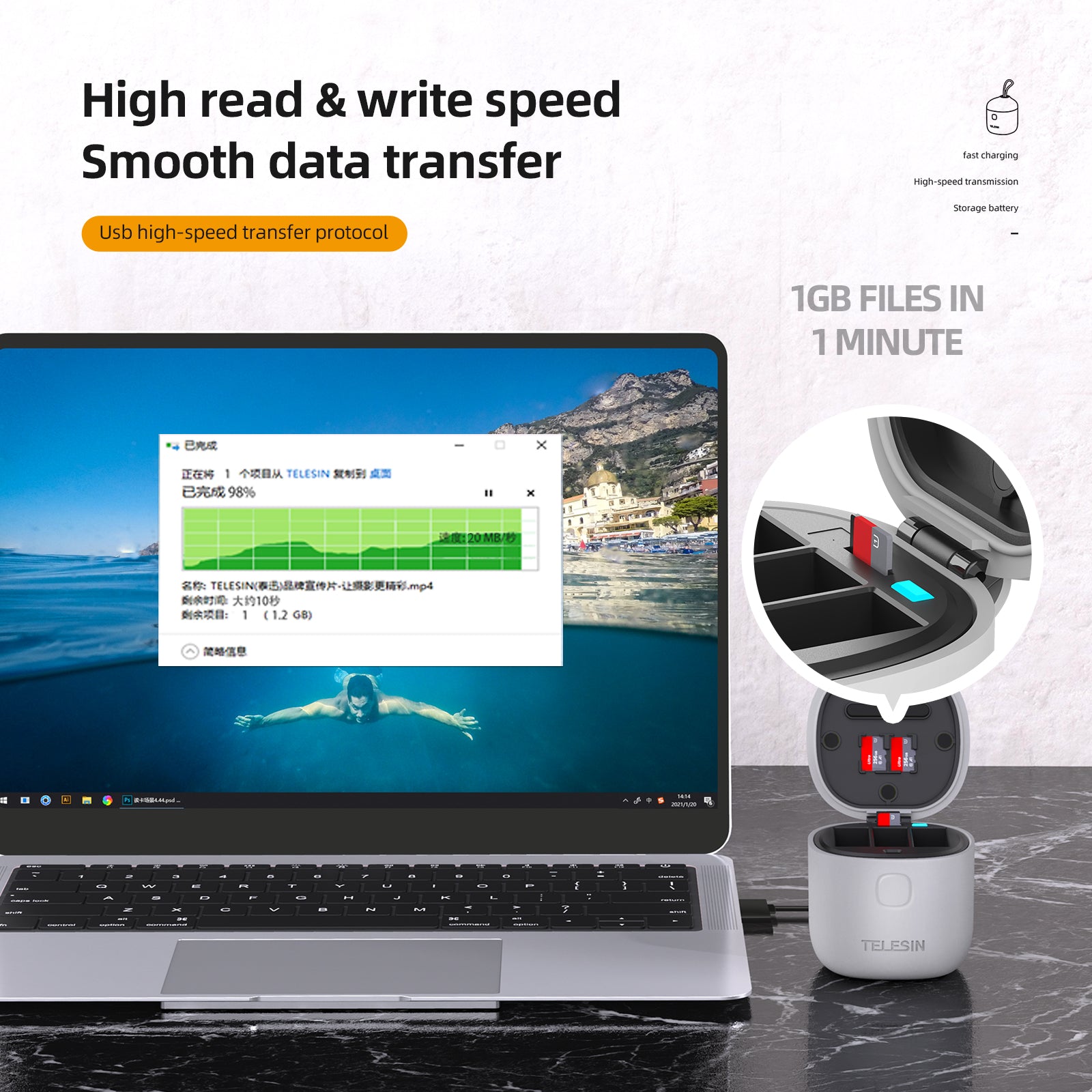 Can store 3 TF cards and provide a maximum card reading speed of 20Mb/s