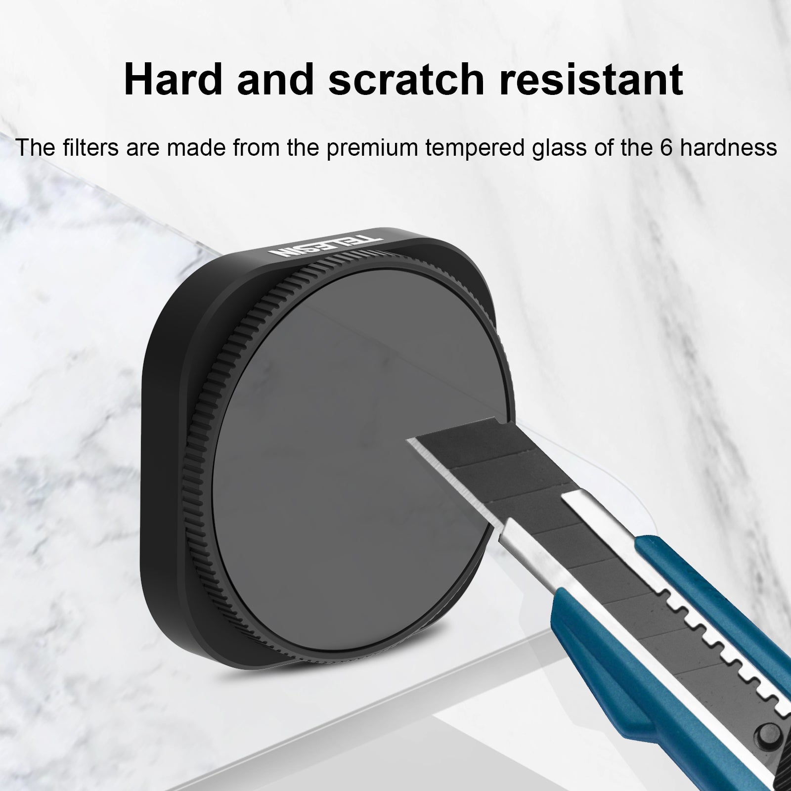 The lens has the effects of ND dimming filter and CPL polarizer at the same time
