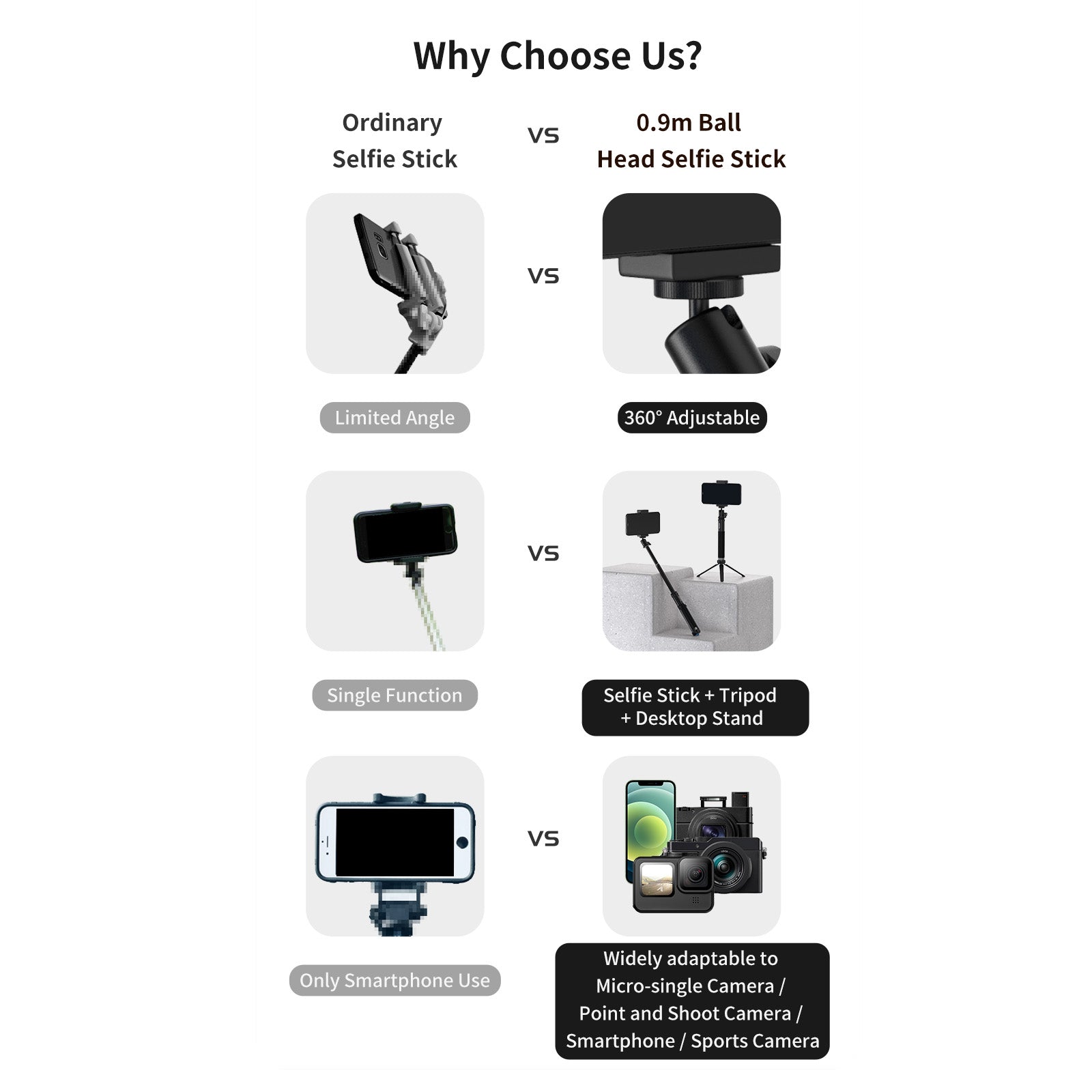 TELESIN GP-MNP-093-H 0.9m Aluminum Alloy Selfie Stick 360° Rotation Ball Head Phone Holder Tripod Mount