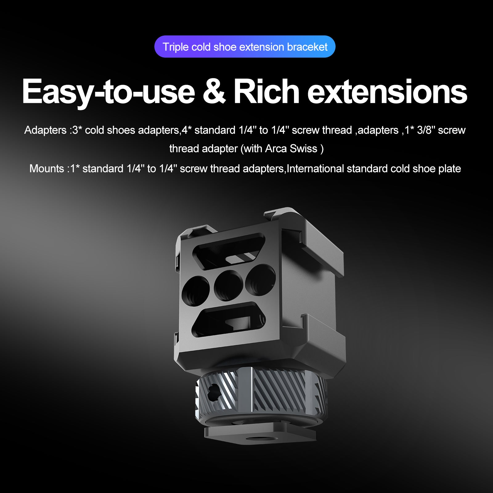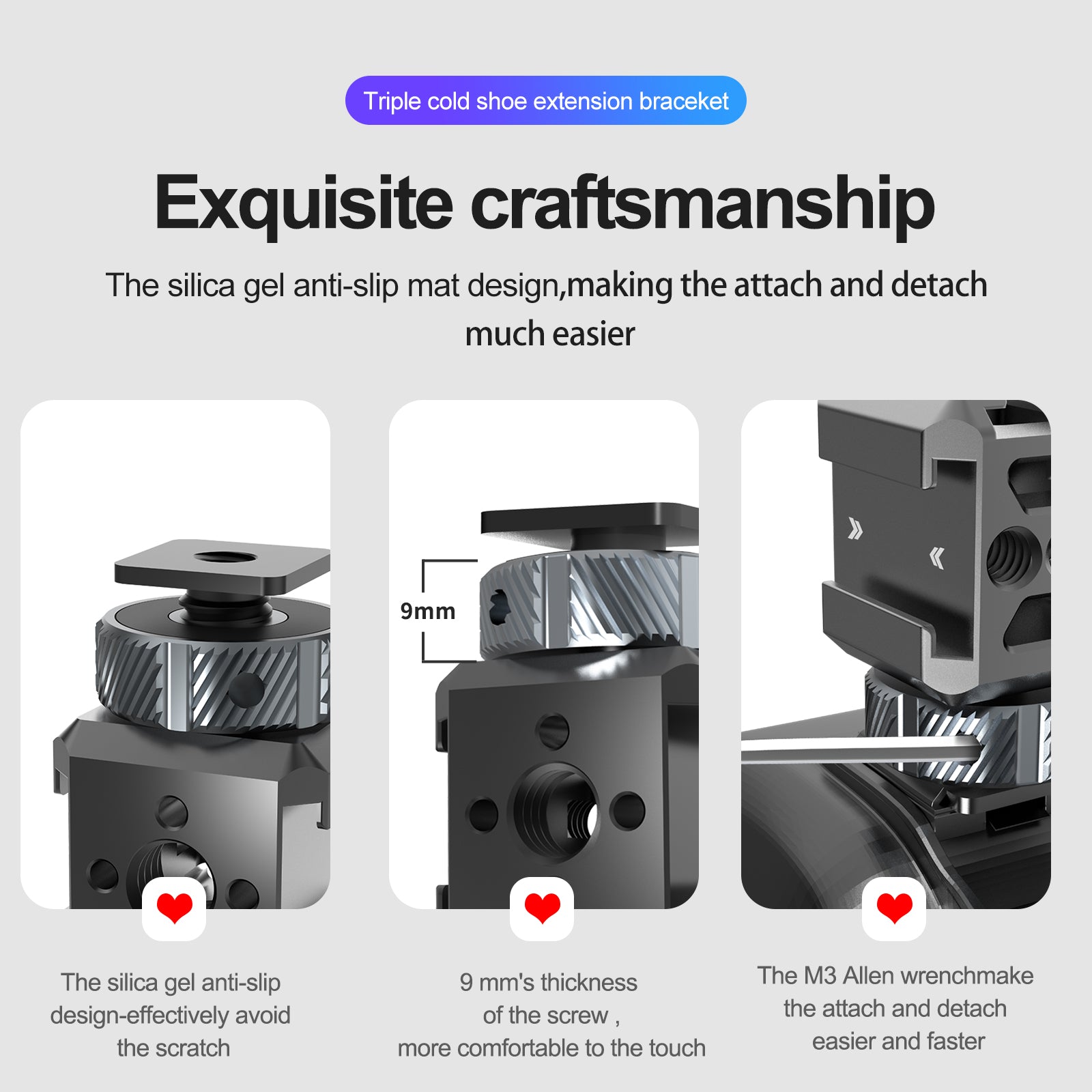 Triple cold shoe extension bracket, multifunctional and rich extensions, easy to use