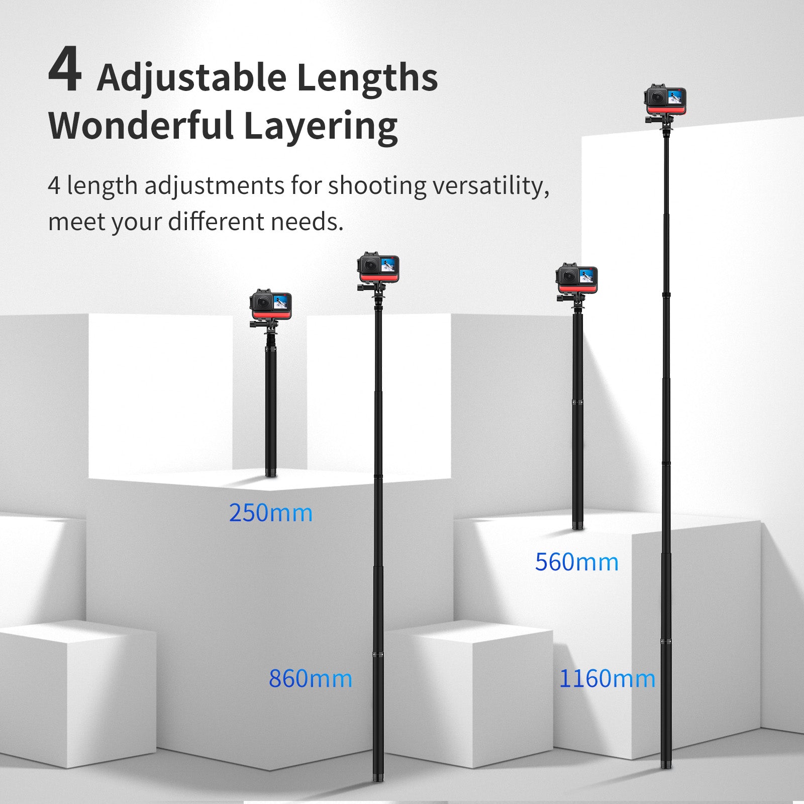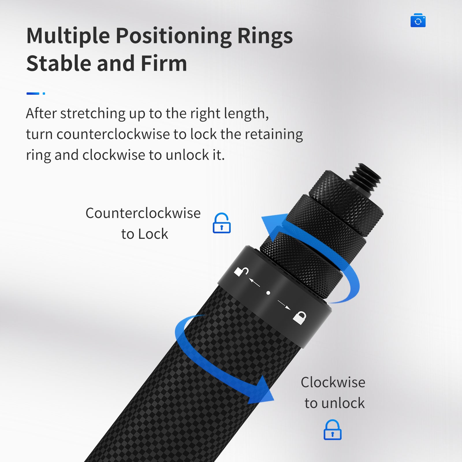 Uniqkart TE-MNP-117 1.16m Carbon Fiber Selfie Stick Adjustable Length Monopod with 1/4 Screw Hole for Phone Action Camera
