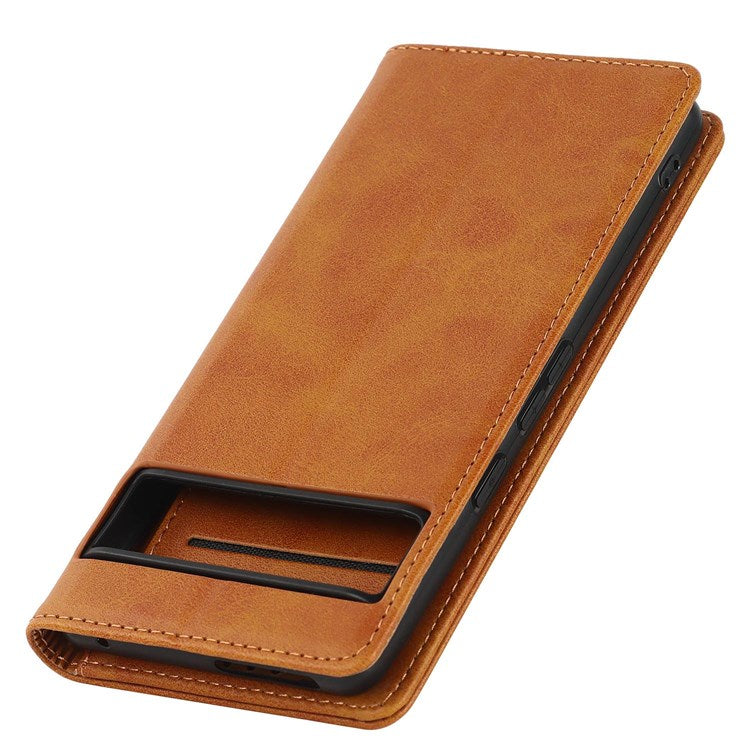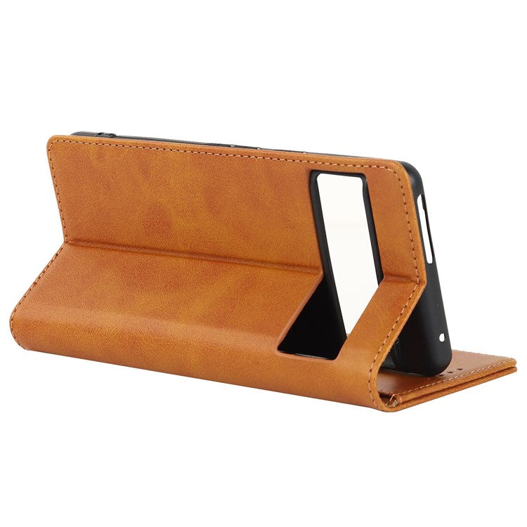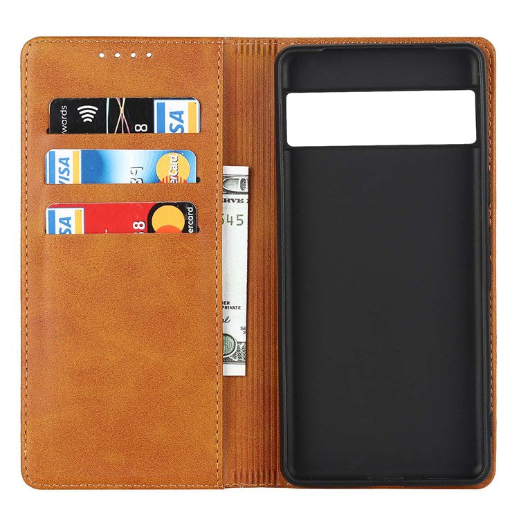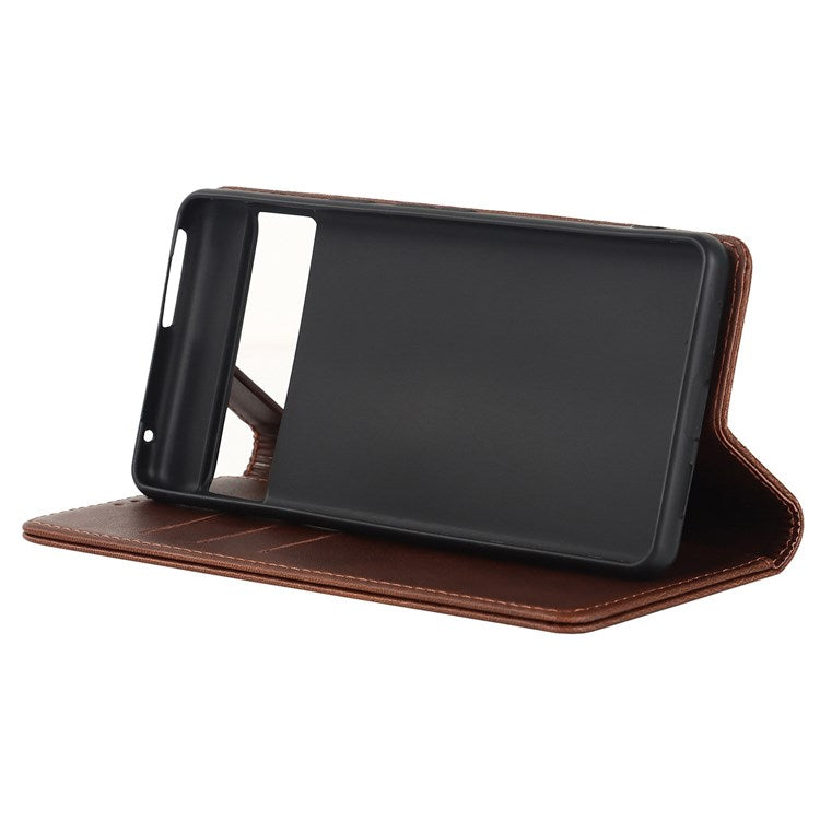 Textured PU Leather Case for Google Pixel 7 5G, Stand Wallet Design Auto Closing Magnetic Phone Cover - Light Brown