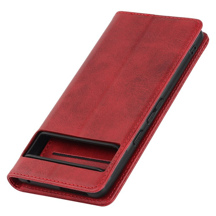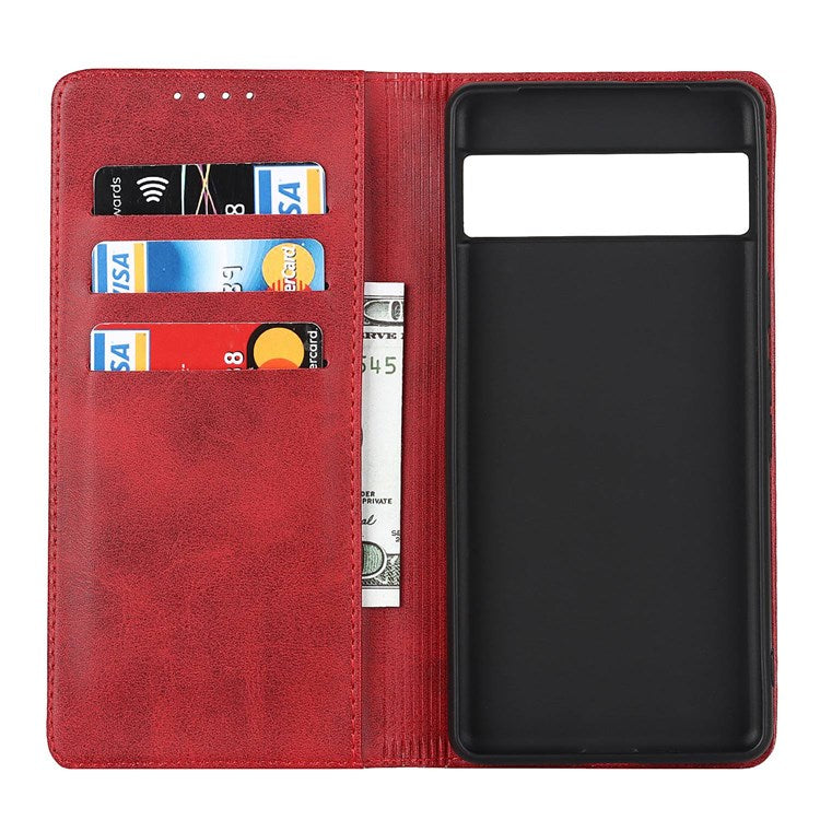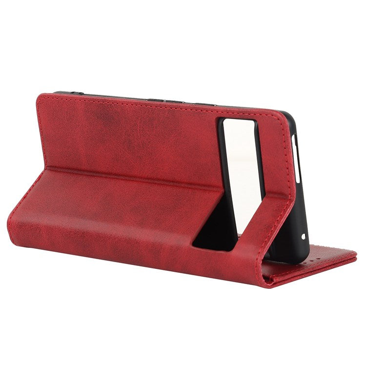 Textured PU Leather Case for Google Pixel 7 5G, Stand Wallet Design Auto Closing Magnetic Phone Cover - Red