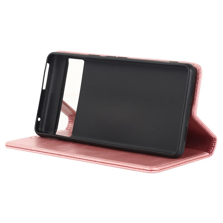 Textured PU Leather Case for Google Pixel 7 5G, Stand Wallet Design Auto Closing Magnetic Phone Cover - Rose Gold