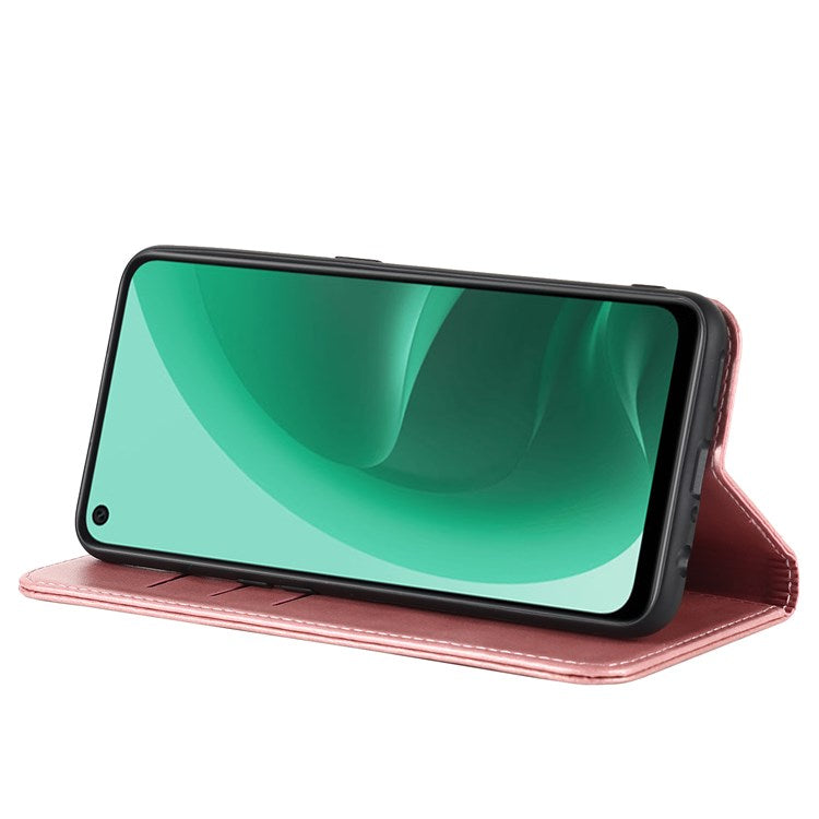 Textured PU Leather Wallet Case for Oppo A55s 5G, Magnetic Auto-absorbed Adjustable Phone Cover - Rose Gold
