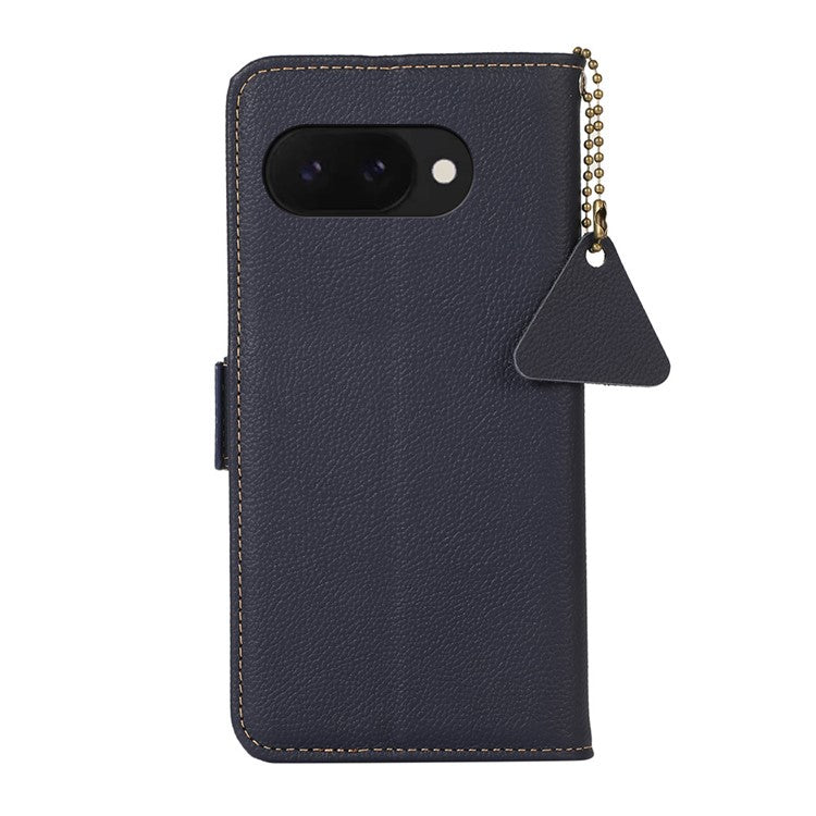 TJ For Google Pixel 9a Case RFID Blocking Genuine Cow Leather Phone Cover - Blue