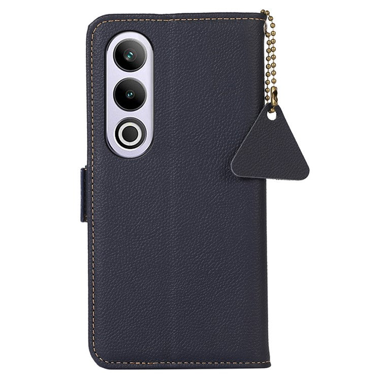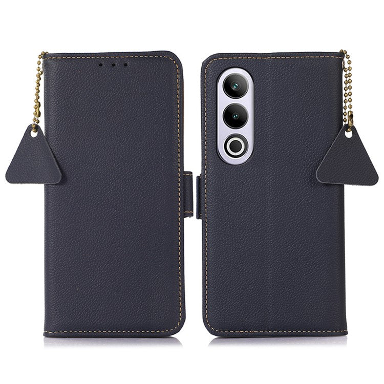 TJ For OnePlus Nord CE4 5G RFID Blocking Case Genuine Cow Leather Cover - Blue