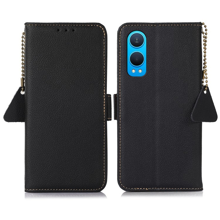 TJ For OnePlus Nord CE4 Lite 5G / Oppo K12x 5G (China) Case RFID Blocking Genuine Cow Leather Phone Cover - Black