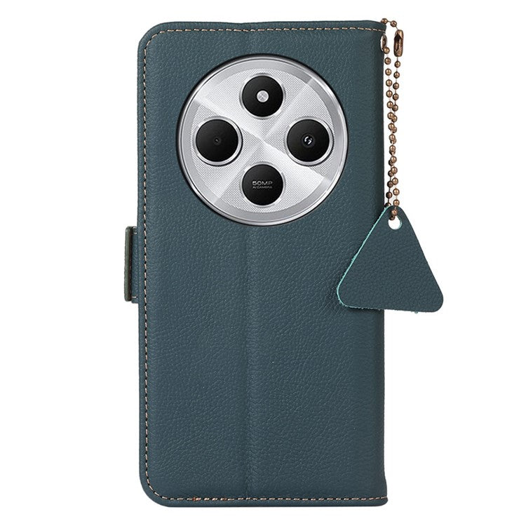 TJ For Xiaomi Redmi 14C 4G Case RFID Blocking Genuine Cow Leather Phone Cover - Green