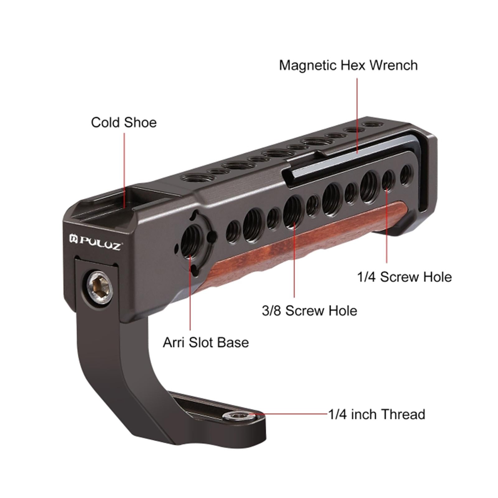 The handle is covered with 1/4 and 3/8 inch threaded holes to allow more expansion of the photography. The front part of the grip is made of cold boot base.