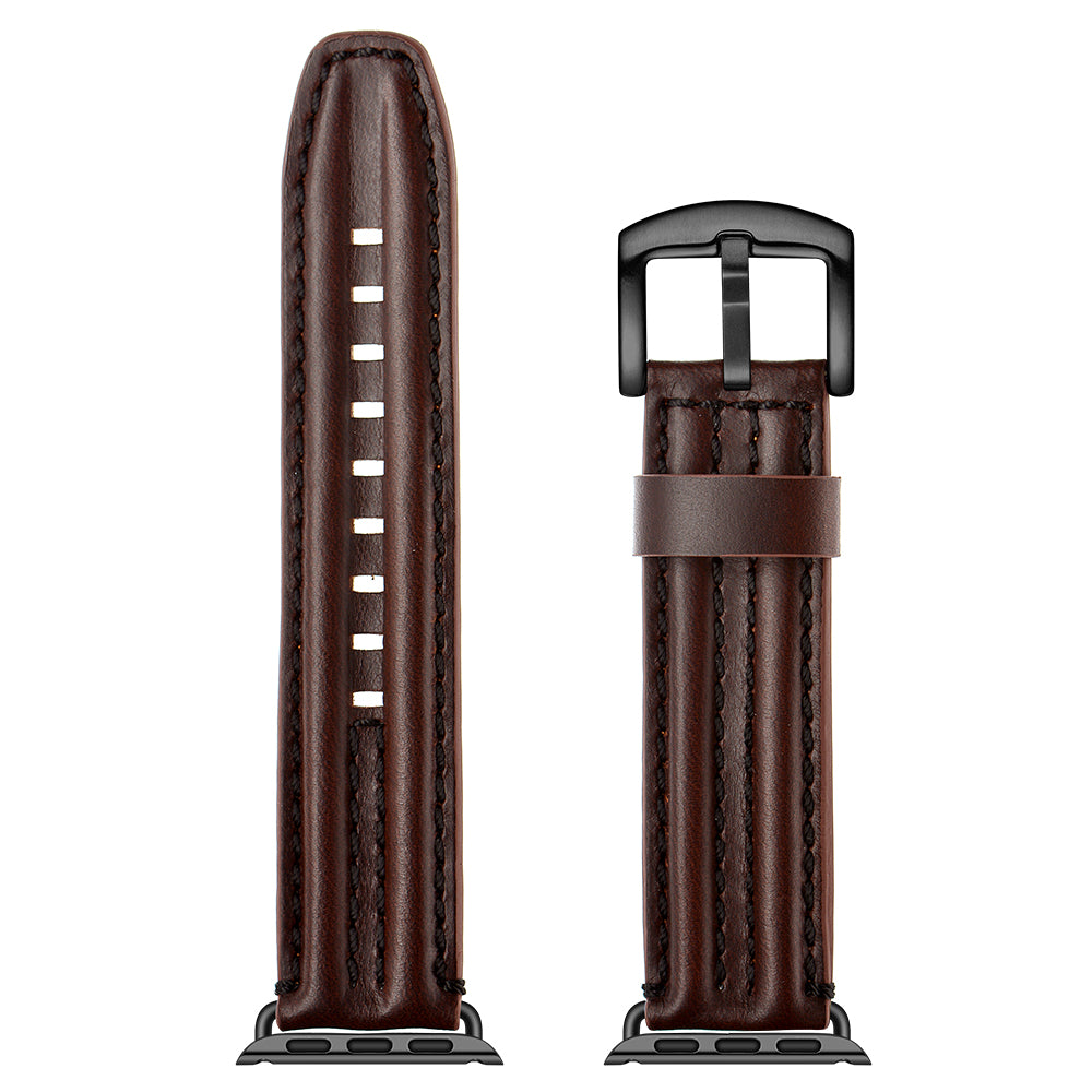 Top Layer Genuine Leather Watch Strap Band for Apple Watch Series 8 45mm / Ultra 49mm / 7 45mm / Series 6 / 5 / 4 / SE / SE (2022) 44m / Series 3 / 2 / 1 42mm - Coffee