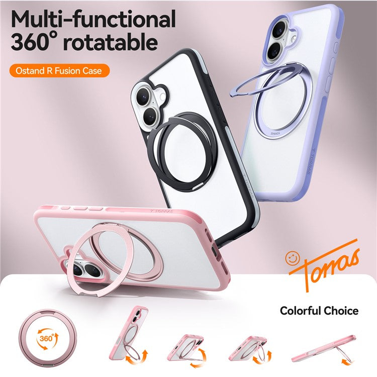 TORRAS Ostand R Fusion For iPhone 16 Case 360 Degree Rotating Kickstand TPU+PC Phone Cover Compatible with MagSafe - Light Green