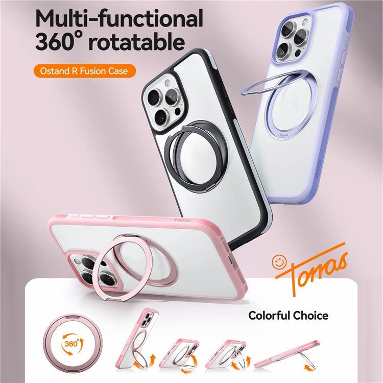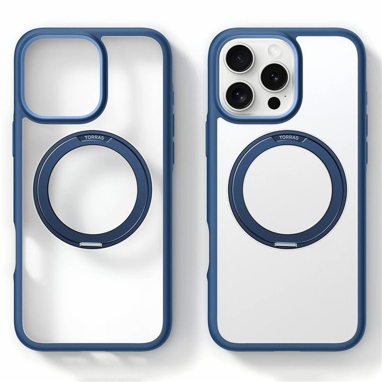 TORRAS Ostand R Fusion For iPhone 16 Pro Case 360 Degree Rotating Kickstand TPU+PC Phone Cover Compatible with MagSafe - Navy Blue