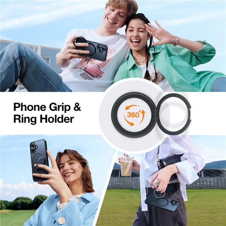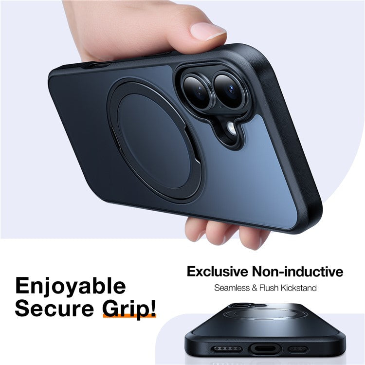 TORRAS Ostand R Series for iPhone 16 Case Rotating Kickstand TPU+PC Phone Cover Compatible with MagSafe - Black