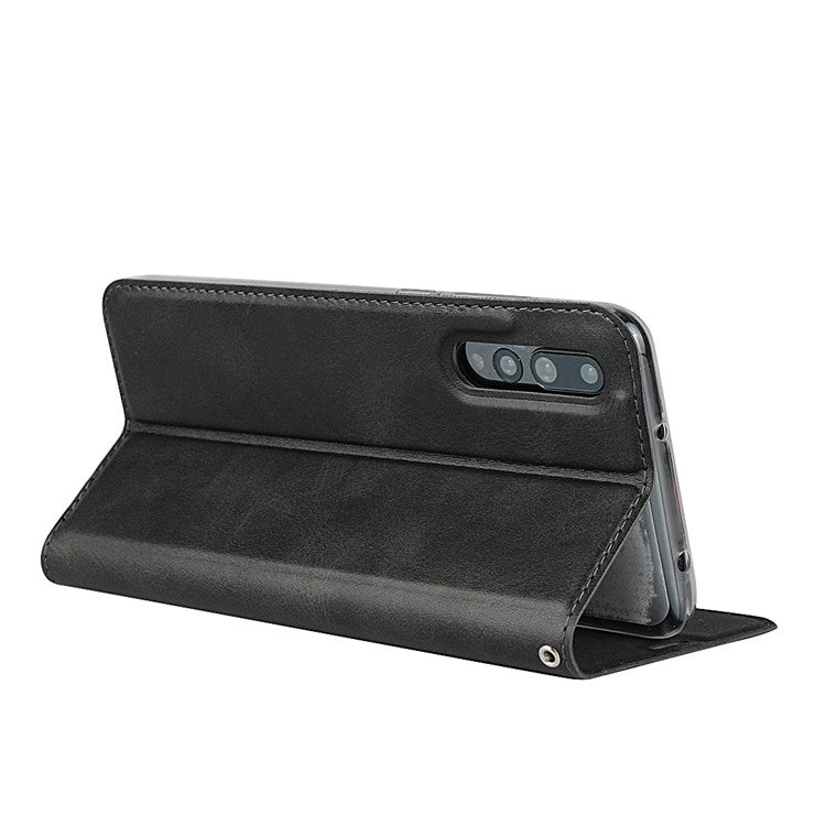 TPU+PU Leather Phone Stand Casing with Lanyard for Huawei P20 Pro - Black