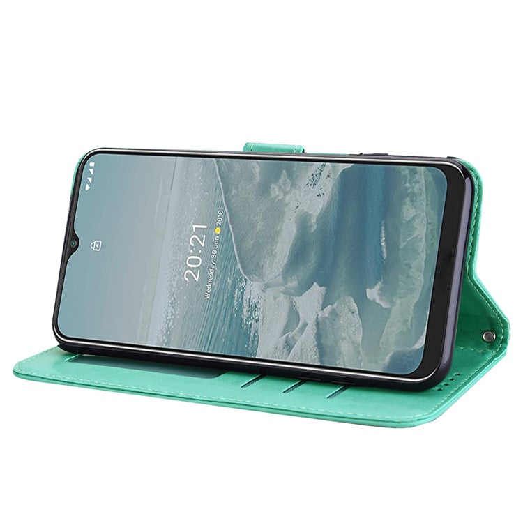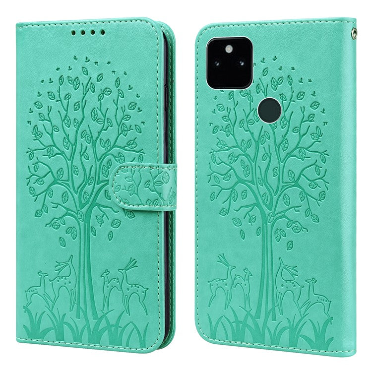 Tree and Deer Imprinted Wallet Stand Design All-round Protection Double-sided Magnetic Clasp Leather Phone Shell Case for Google Pixel 5a 5G - Green