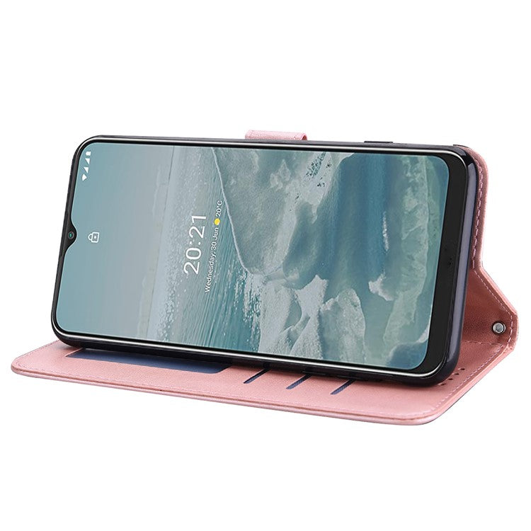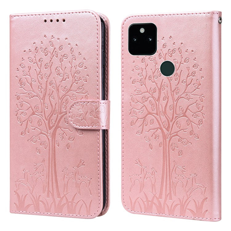 Tree and Deer Imprinted Wallet Stand Design All-round Protection Double-sided Magnetic Clasp Leather Phone Shell Case for Google Pixel 5a 5G - Pink
