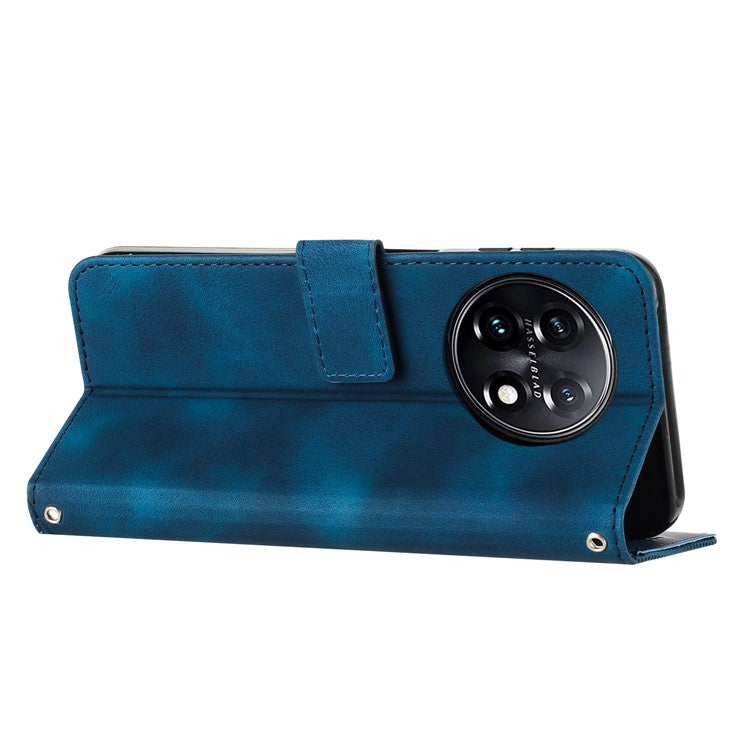 Triangle Imprinted Wallet Phone Case for OnePlus 11 5G , Stand PU Leather Anti-drop Cover - Sapphire