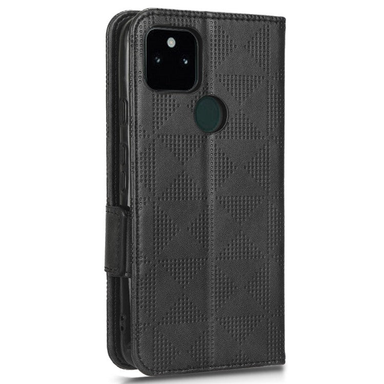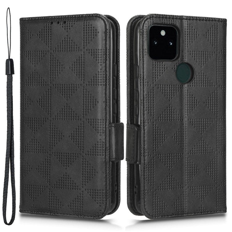 Triangle Pattern Imprinted Phone Case for Google Pixel 5a 5G Anti-scratch Folio Flip Cover PU Leather Wallet Stand Case with Strap - Black