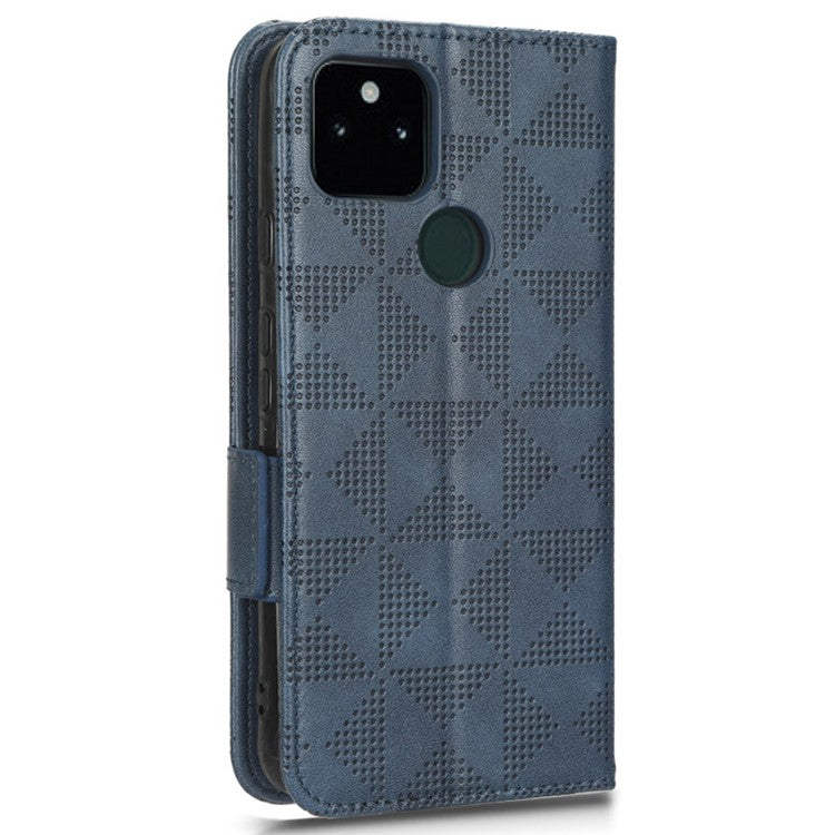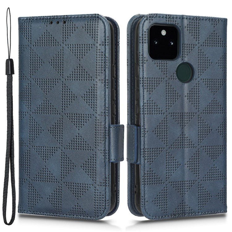 Triangle Pattern Imprinted Phone Case for Google Pixel 5a 5G Anti-scratch Folio Flip Cover PU Leather Wallet Stand Case with Strap - Blue