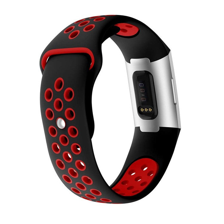 Two-color Soft Silicone Watch Band for Fitbit Charge 3 - Black / Red