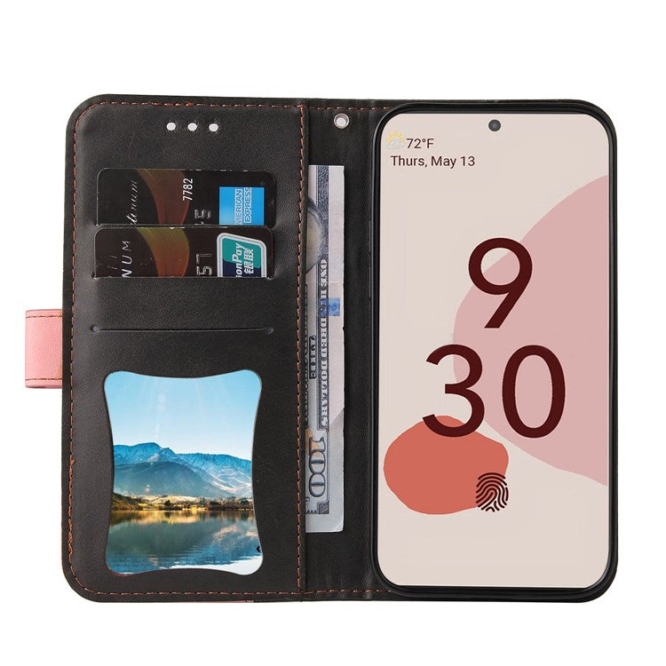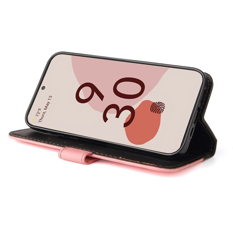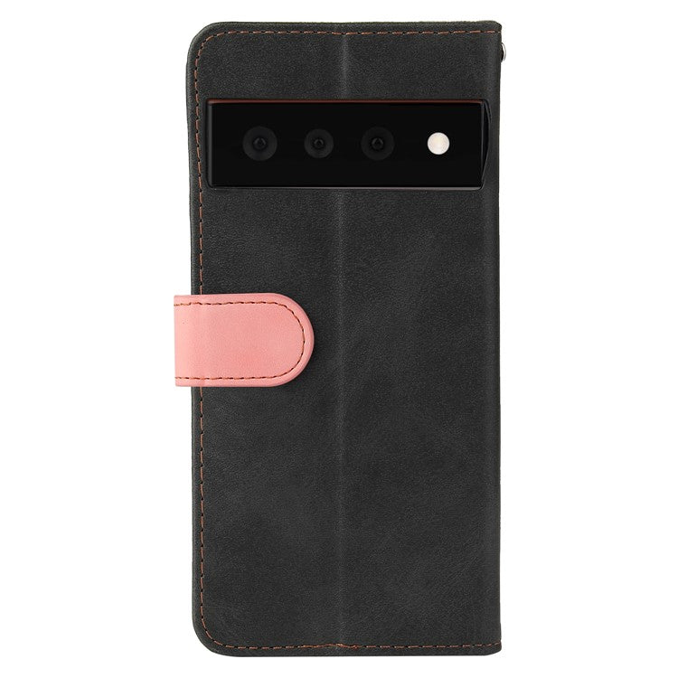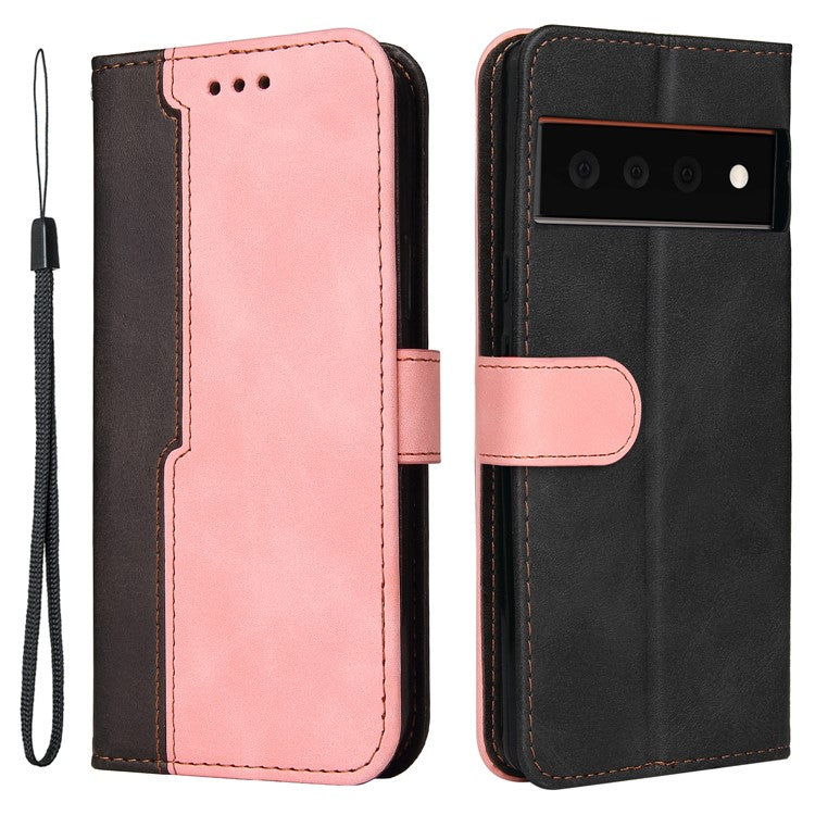 Two-Color Style Magnetic Soft TPU + PU Shockproof Flip Cover Wallet with Strap for Google Pixel 6 - Pink