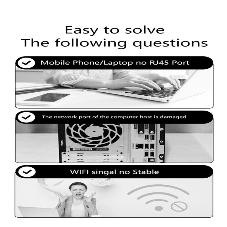 - Designed for Type-C interface laptops without RJ45 port or with damaged RJ45 port, or in the Wi-Fi dead zones with only wired network