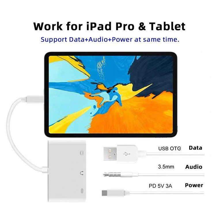 UC-155-TC004 Type C to 3.5mm Audio + Type-A USB2.0 OTG Female with PD Power Charge Adapter for Laptop Tablet Phone