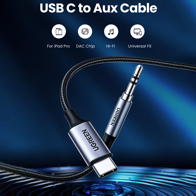 - USB C to Aux Cable for Car: UGREEN USB C to 3.5mm Male Cable streams stereo audio directly from Type C phones/tablets/laptops to audio output devices with auxiliary port, without aux cord to the short adapter, like connecting for S21+ phone to car stereo system, for iPad Pro 2021 to headphones, for MacBook to speakers. The USB C to Aux Adapter simplifies connection and enables you to enjoy Hi-Fi music on high-end devices