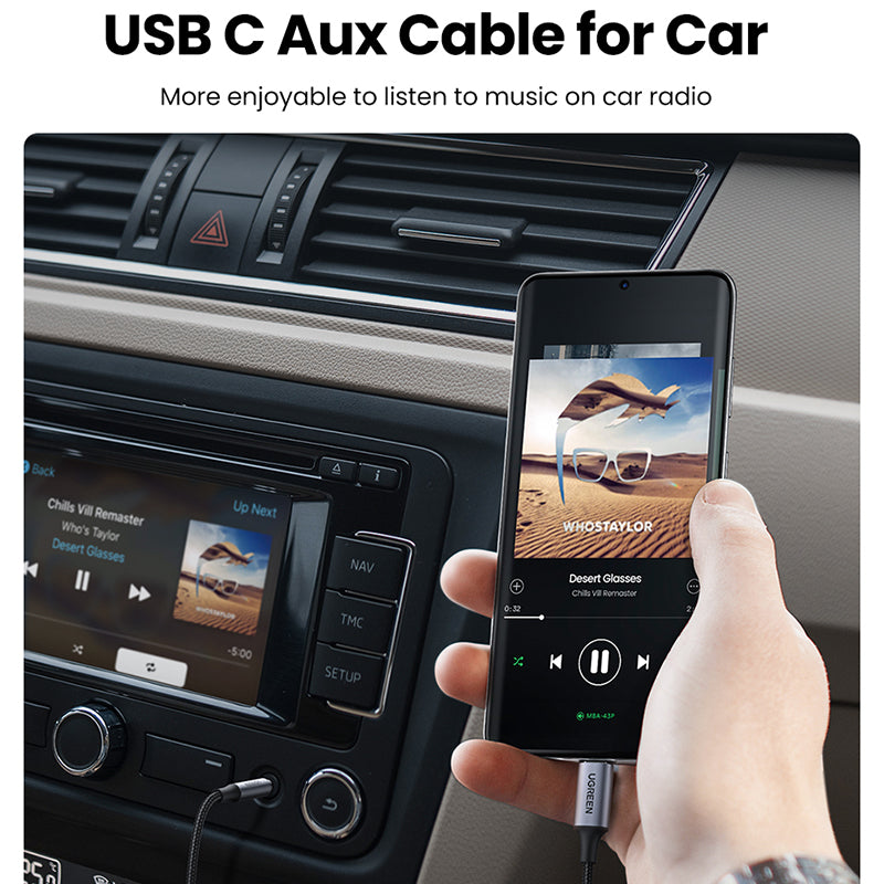 - Perfect Companion for A Car: Easy connect Android phone to a car with no Bluetooth capabilities or broken Bluetooth. UGREEN USB-C to 3.5mm Jack Audio Lead works out of the box and fills you with music wherever you are, whenever you like