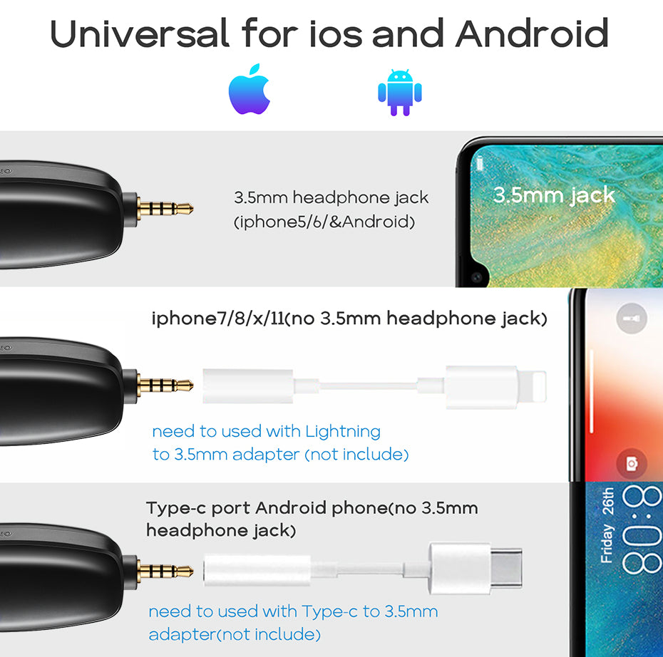 Compatible with for iPhone and Android phones. You can use Android 9.0 without downloading third-party recording software