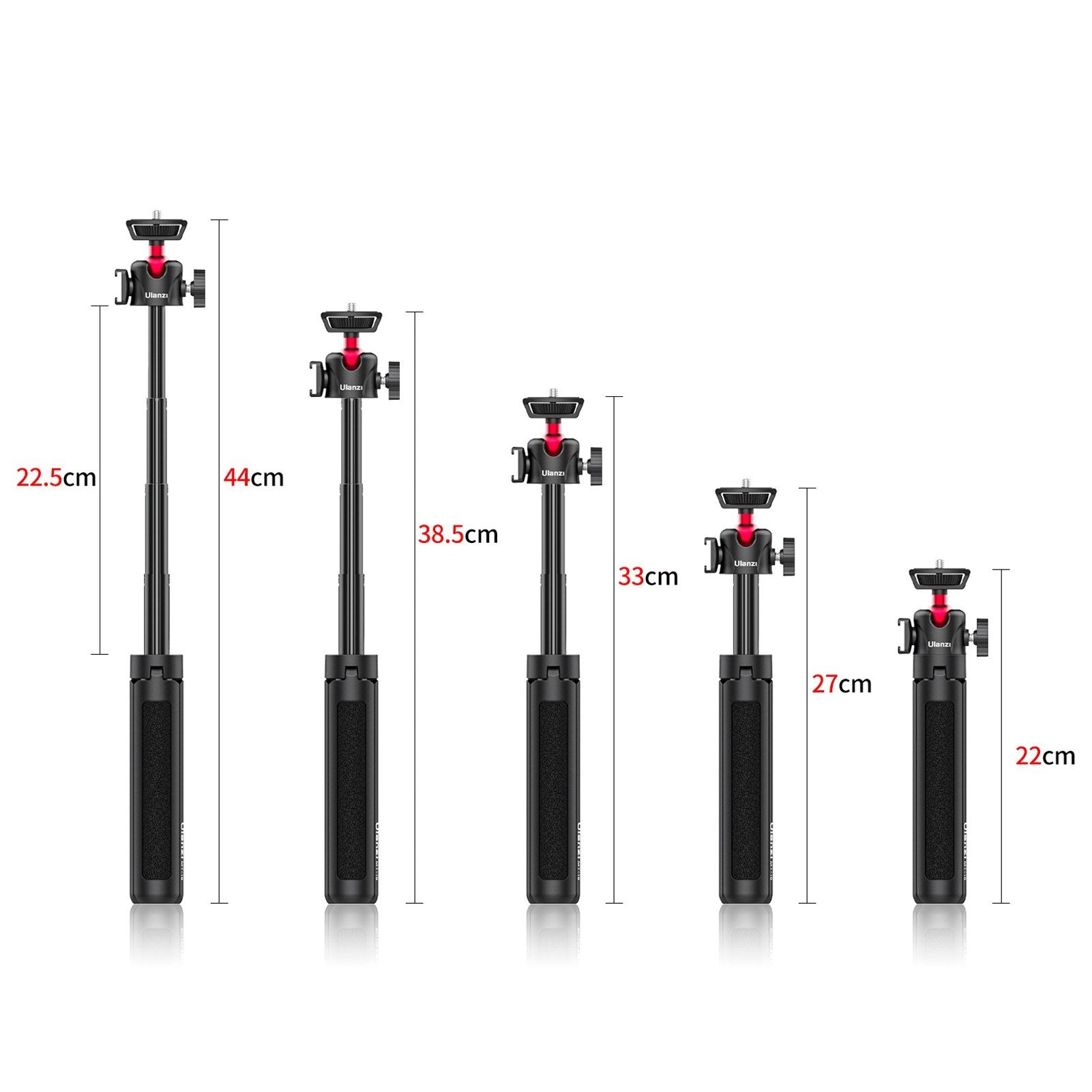4-Section Extendable: The tripod has 4 sections for Max.44cm/17.3in extendable use, 360° swivel ball head can meet the needs of both vertical and level shooting