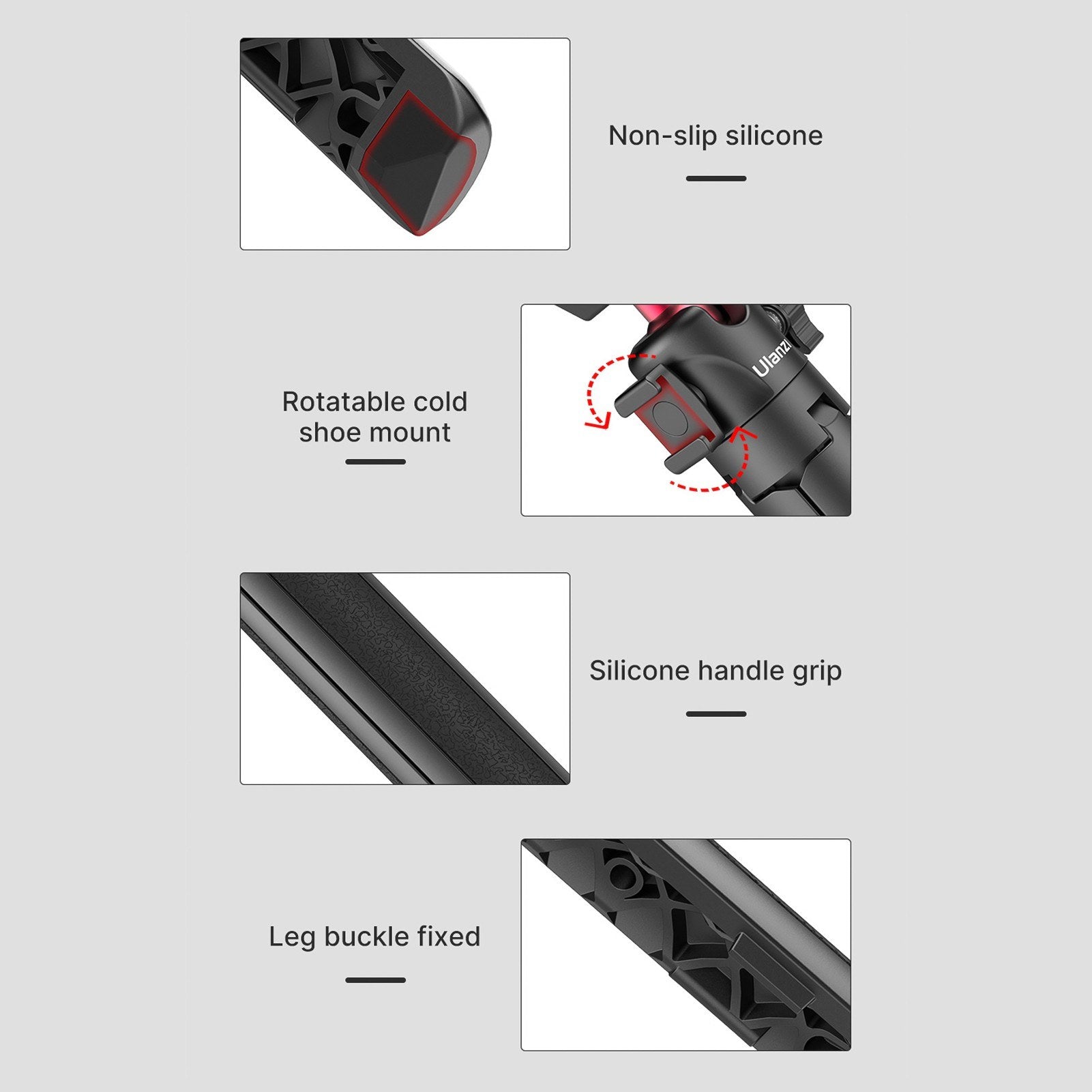 Rotatable Side Cold Shoe: Cold shoe beside the ball head is designed for convenient mounting of microphone and LED fill light, rotatable to satisfy more angles