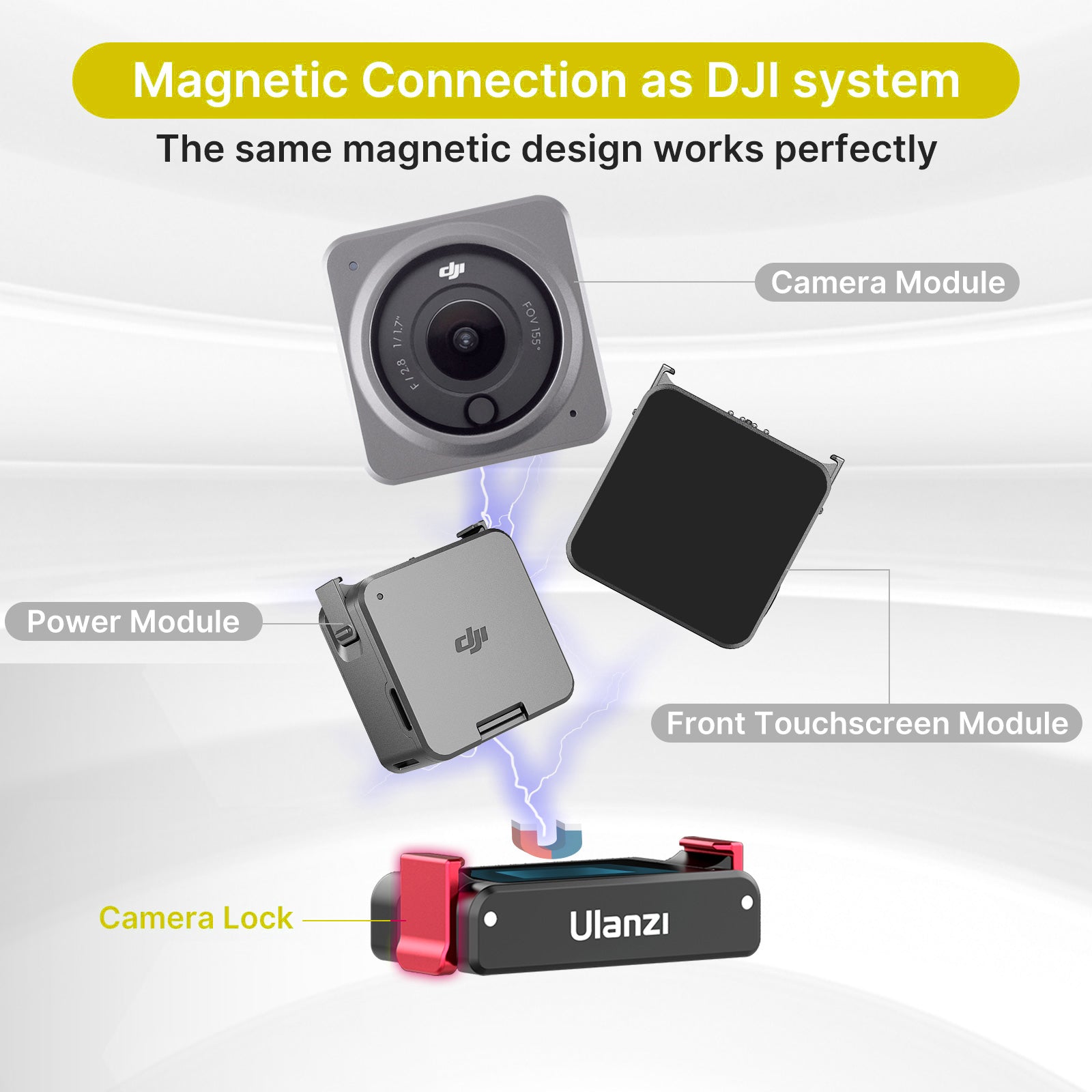- Magnetic Connection as DJI system: adopts Action 2's innovative magnetic design, no matter Camera Module, Power Module, or Front Touchscreen Module, which can quickly mount on the tripod. The same magnetic design works perfectly