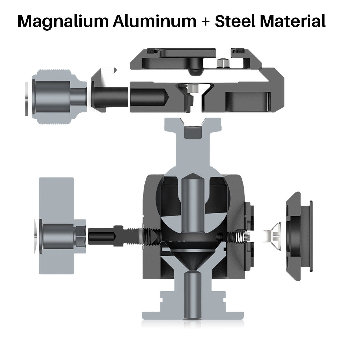 Magnalium Aluminum + Steel Material: Ball head composed of precise magnalium aluminum parts + 2 steel screws