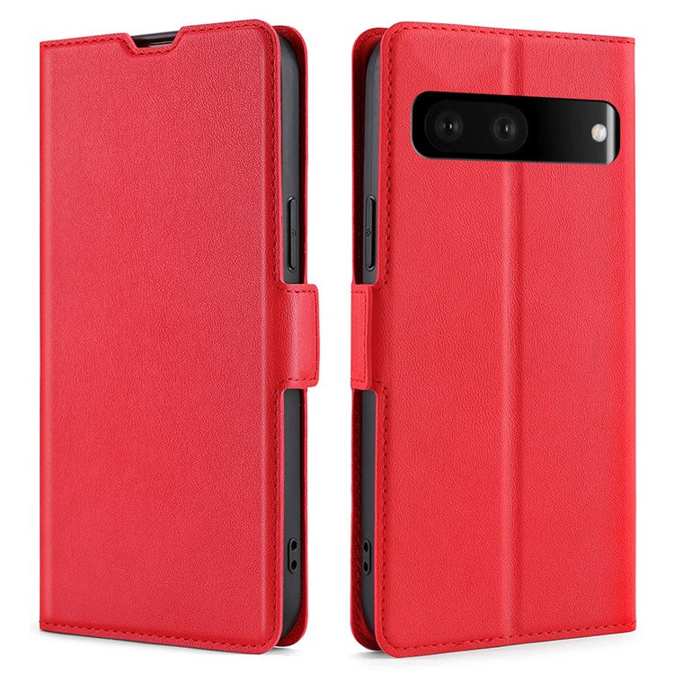 Ultra-thin PU Leather Case for Google Pixel 7 5G Drop-proof Stand Phone Cover Side Magnetic Closure Case with Card Slot - Red
